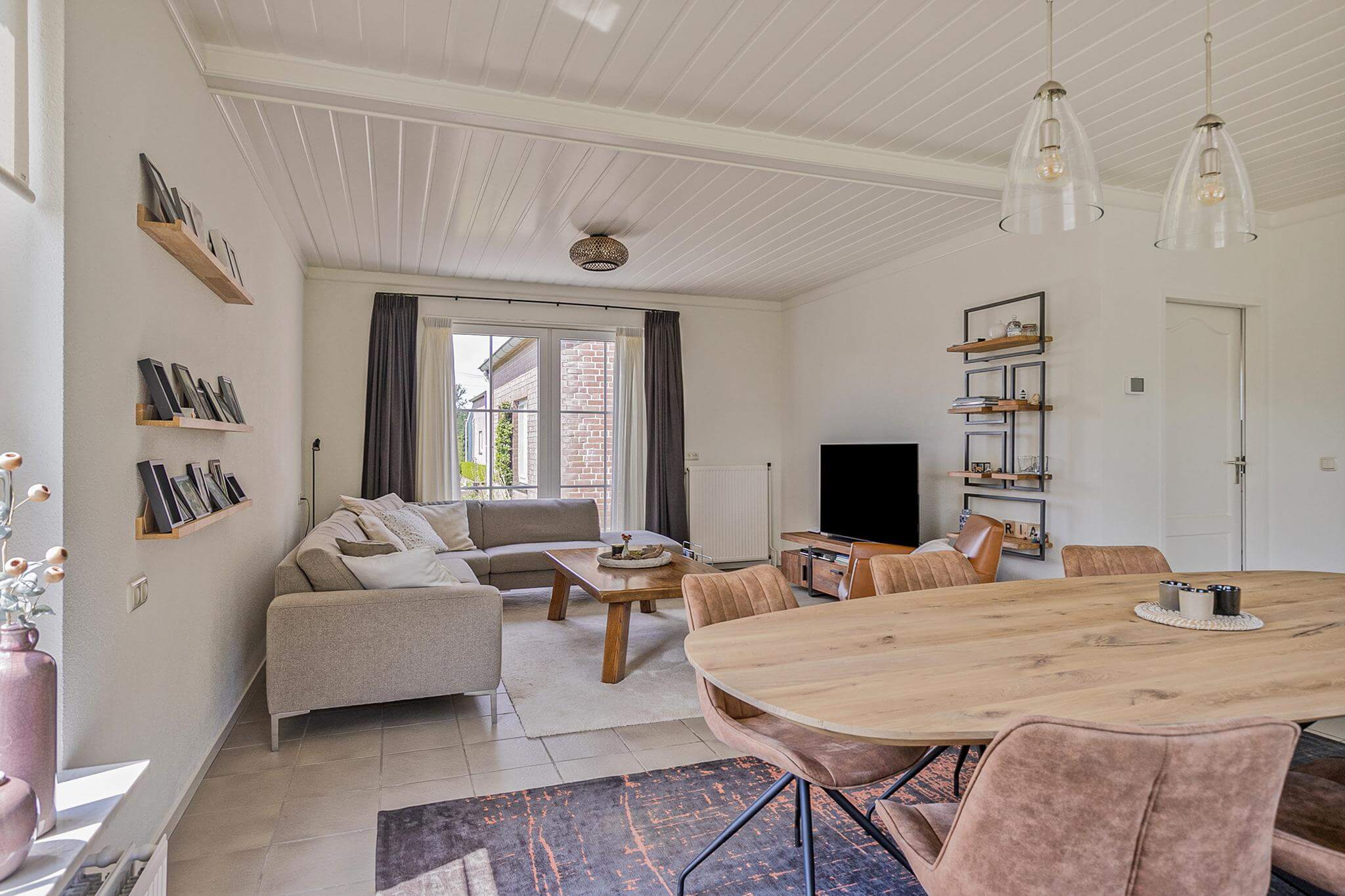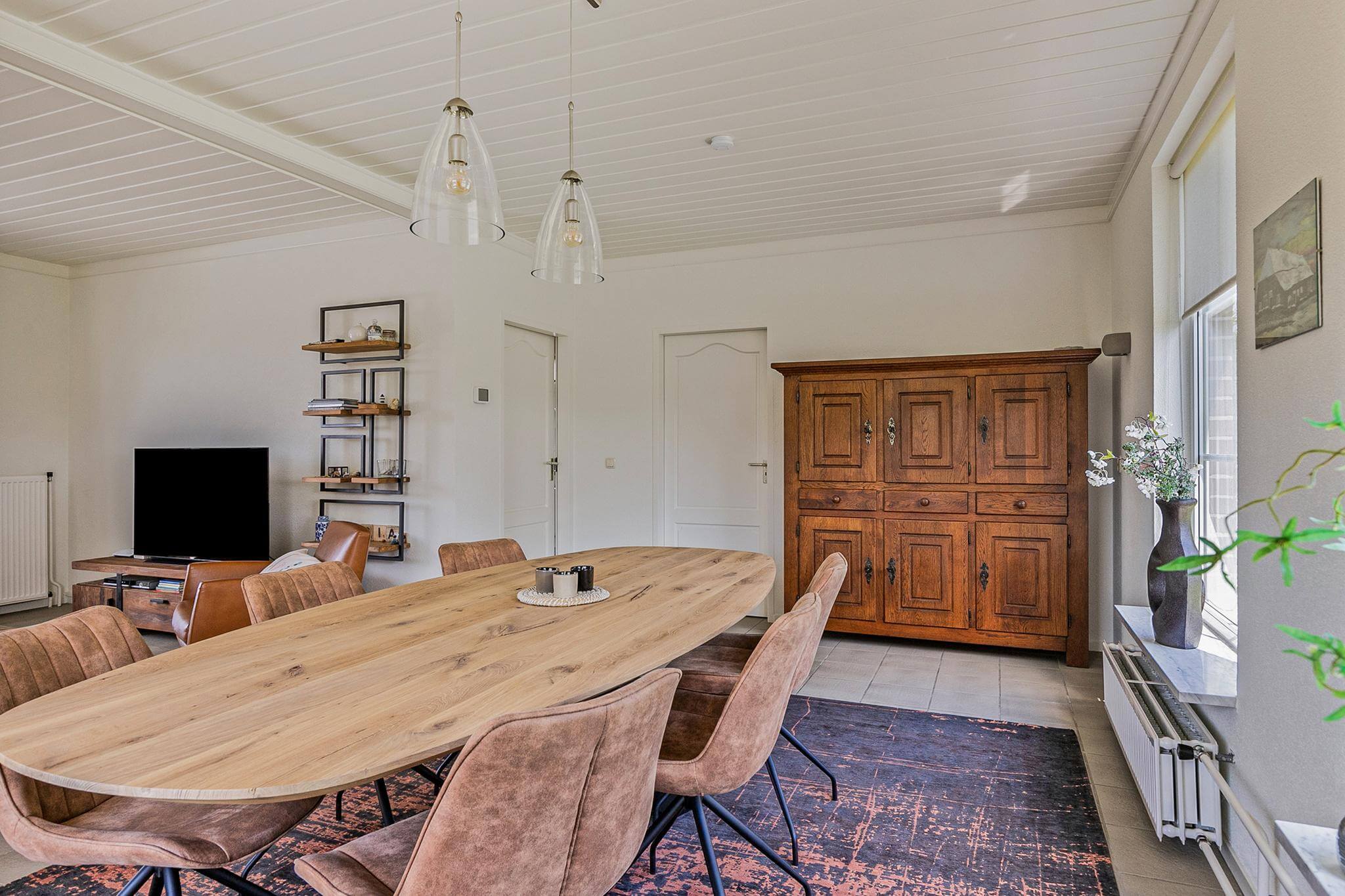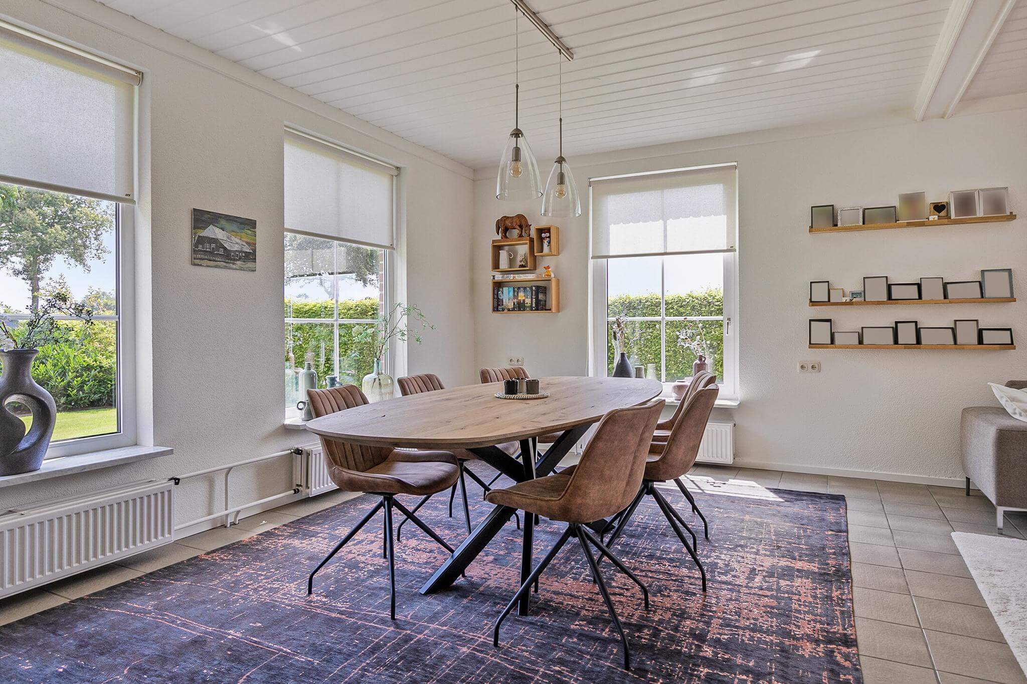 De lichte en ruime woonkamer is perfect voor grote gezelschappen. U geniet hier van veel daglicht en uitzicht over het perceel. De kamer biedt genoeg ruimte voor een gezellige zithoek en een royale eettafel. Vanuit de woonkamer bereikt u de leefkeuken.