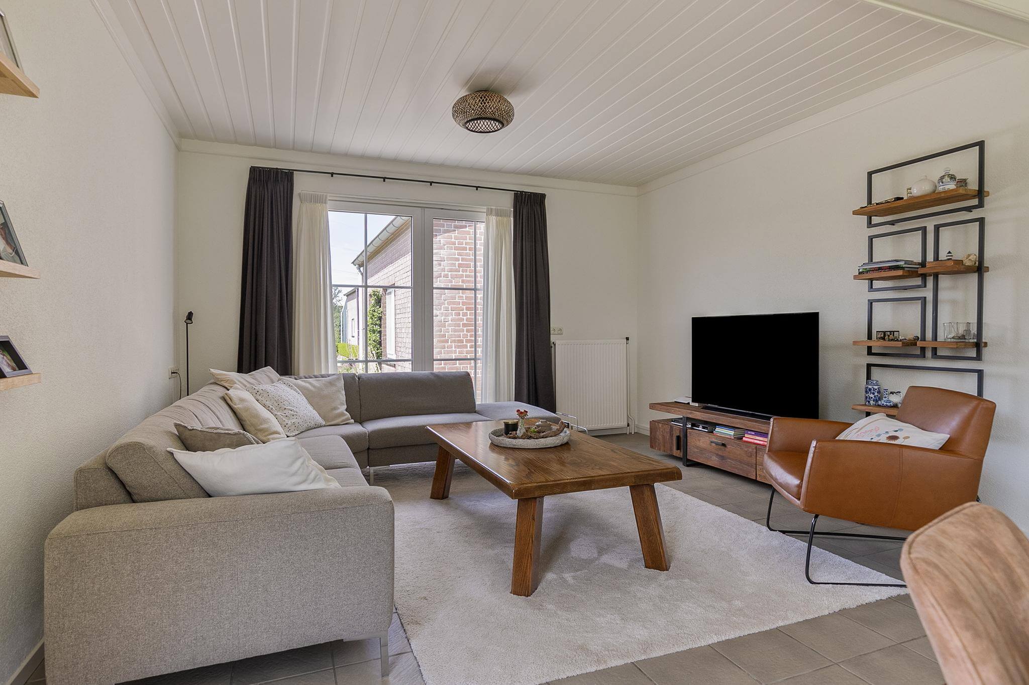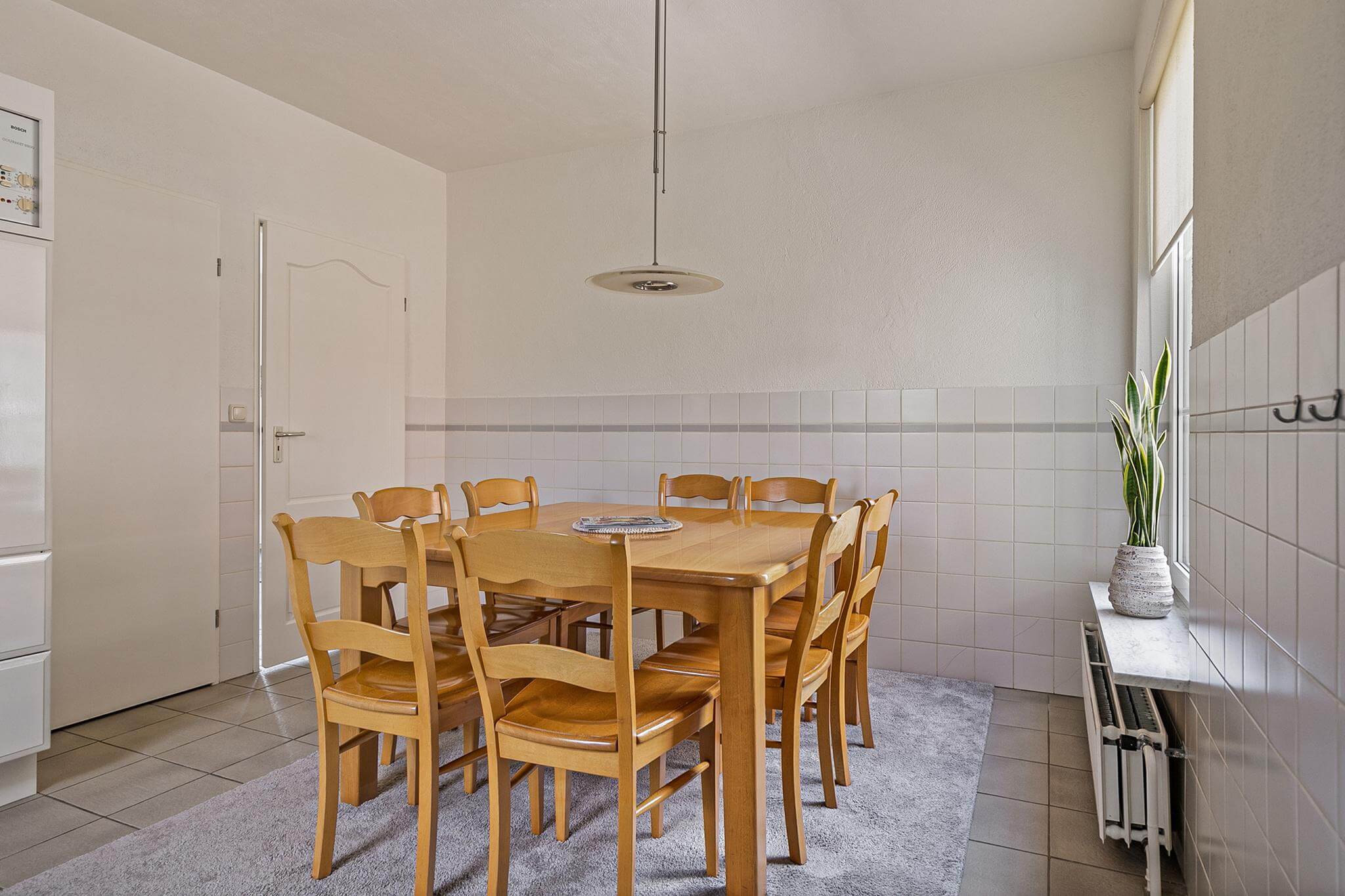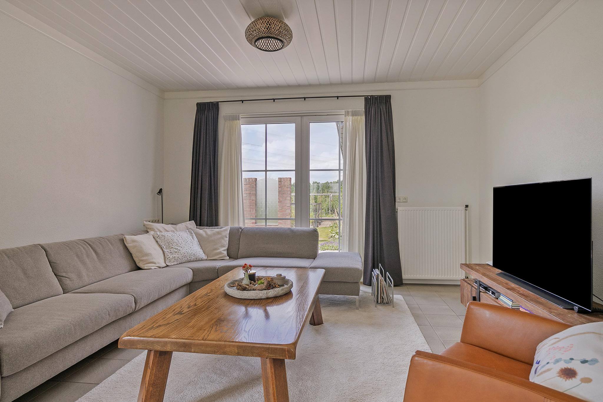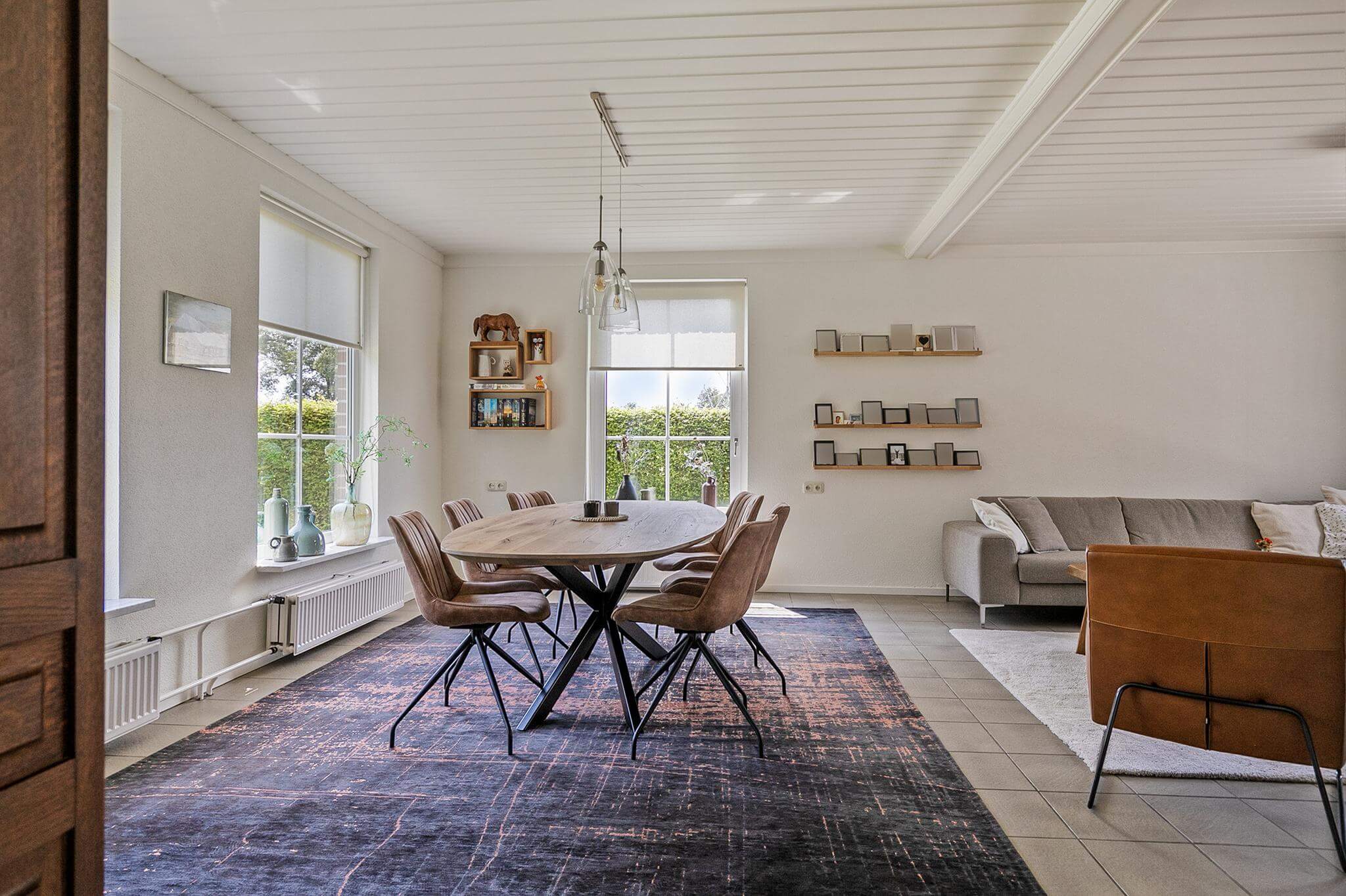 De lichte en ruime woonkamer is perfect voor grote gezelschappen. U geniet hier van veel daglicht en uitzicht over het perceel. De kamer biedt genoeg ruimte voor een gezellige zithoek en een royale eettafel. Vanuit de woonkamer bereikt u de leefkeuken.