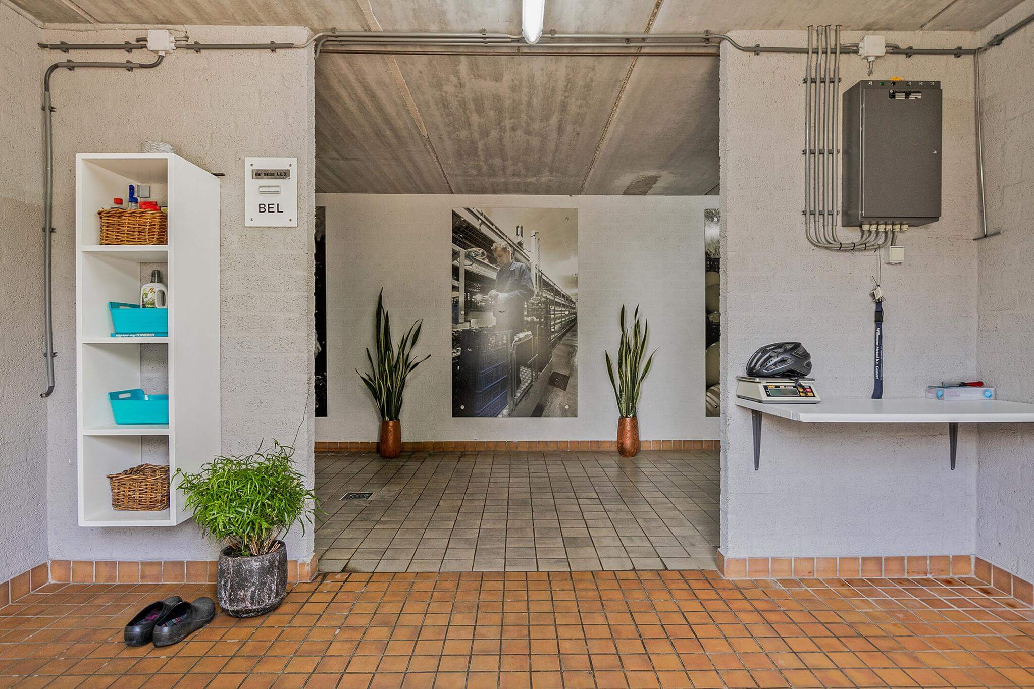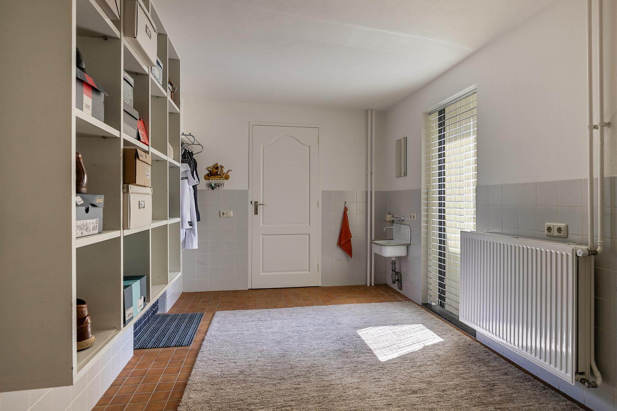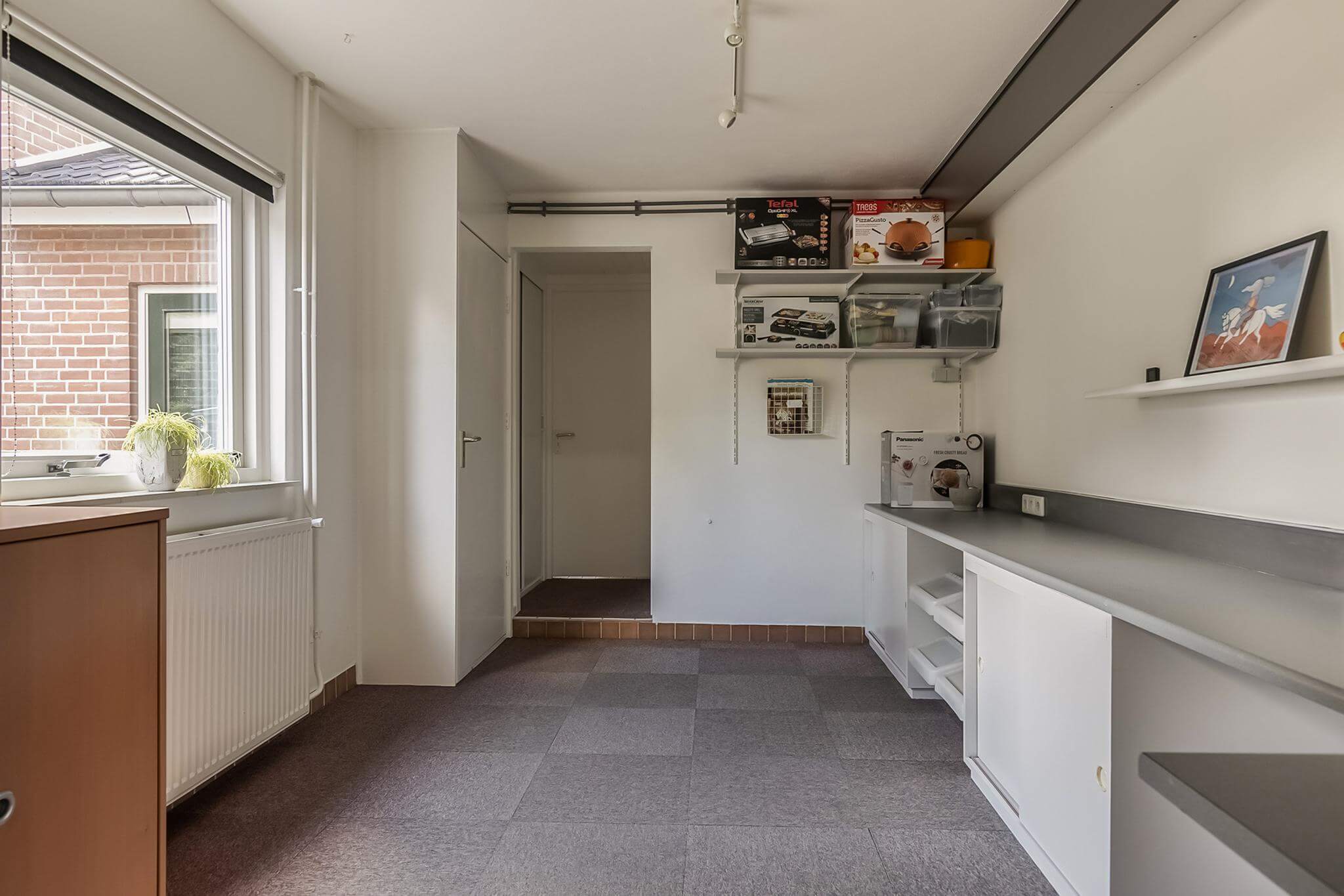 Het veelzijdige kantoor, met uitzicht op het terras, gazon en moestuin, kan multifunctioneel worden ingezet. Ideaal voor thuiswerken of creatieve projecten. Aan de andere zijde van de bijkeuken vindt u een studiekamer, ook deze ruimte is perfect te gebruiken als hobbyruimte of tweede kantoor. Via de studieruimte heeft u toegang tot de royale bedrijfsruimte, een uitgelezen kans voor ondernemers die werk en privé willen combineren.