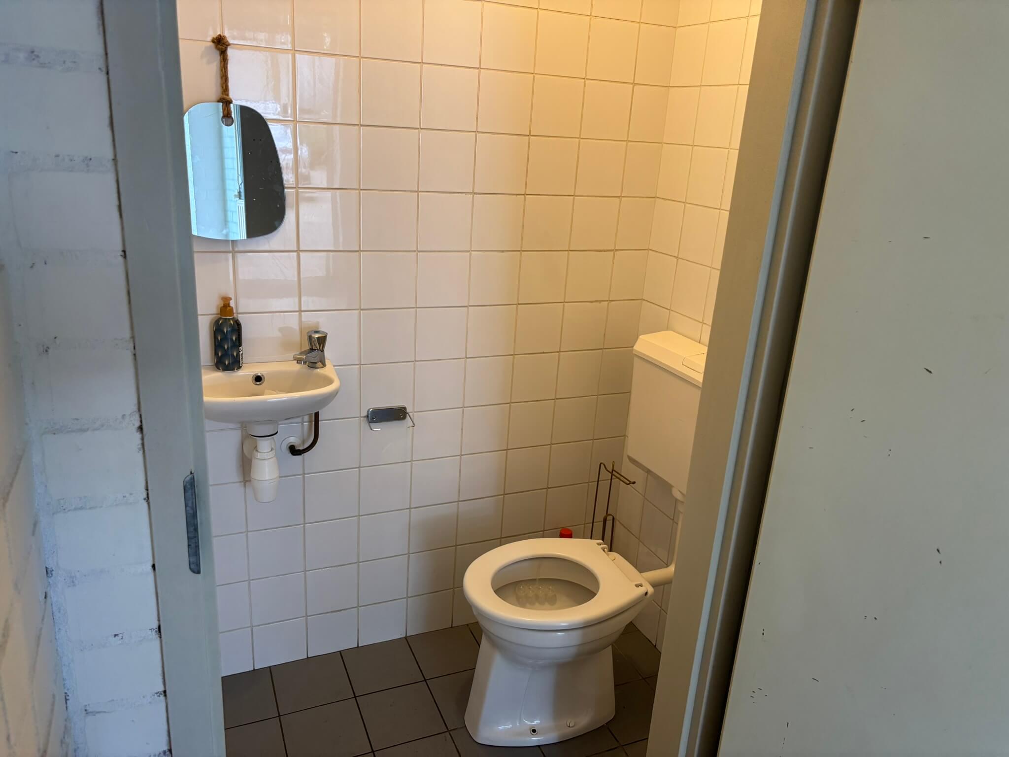 Entree met pantry en toilet, kantoorruimte en bedrijfsruimten met separaat toilet