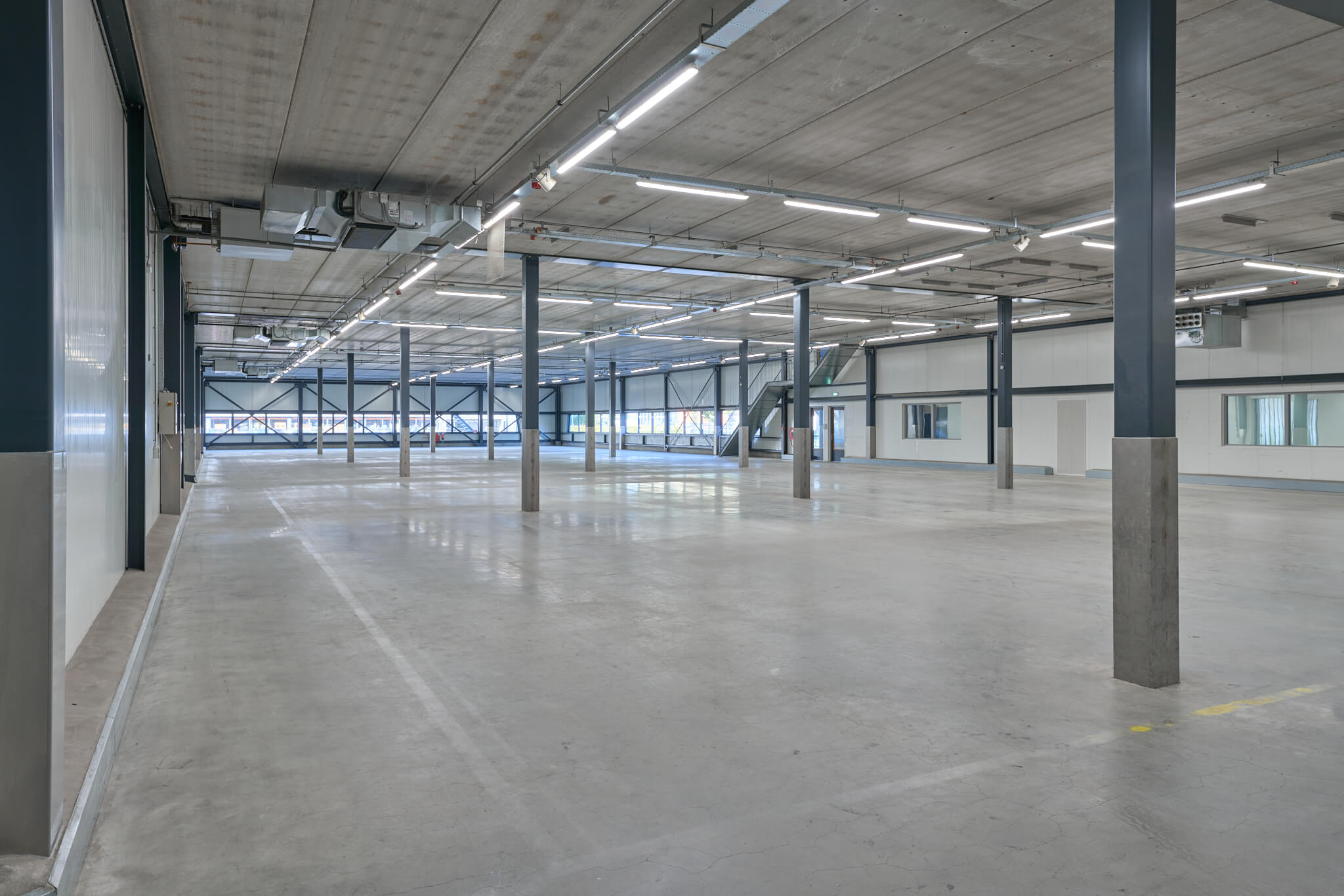 De geconditioneerde bedrijfsruimte heeft een expeditieruimte van ca. 2.596 m² met een vrije hoogte van ca. 4,65 meter. De resterende geconditioneerde bedrijfsruimte van 3.456 m² heeft een vrije hoogte van ca. 8,20 meter en is geschikt voor opslag activiteiten. De bedrijfsruimte op de eerste verdieping van ca. 2.238 m² en de mezzanine van ca. 588 m² kunnen voor uiteenlopende doeleinden worden gebruikt.