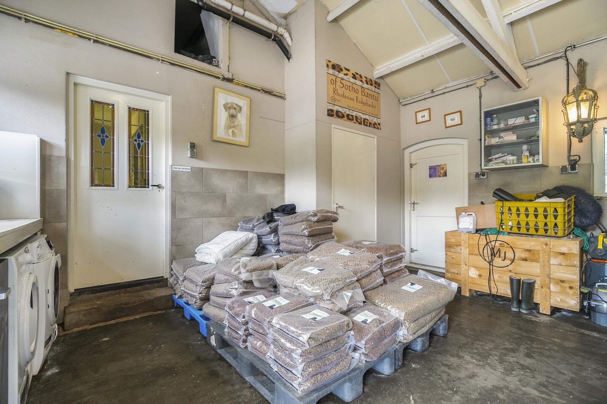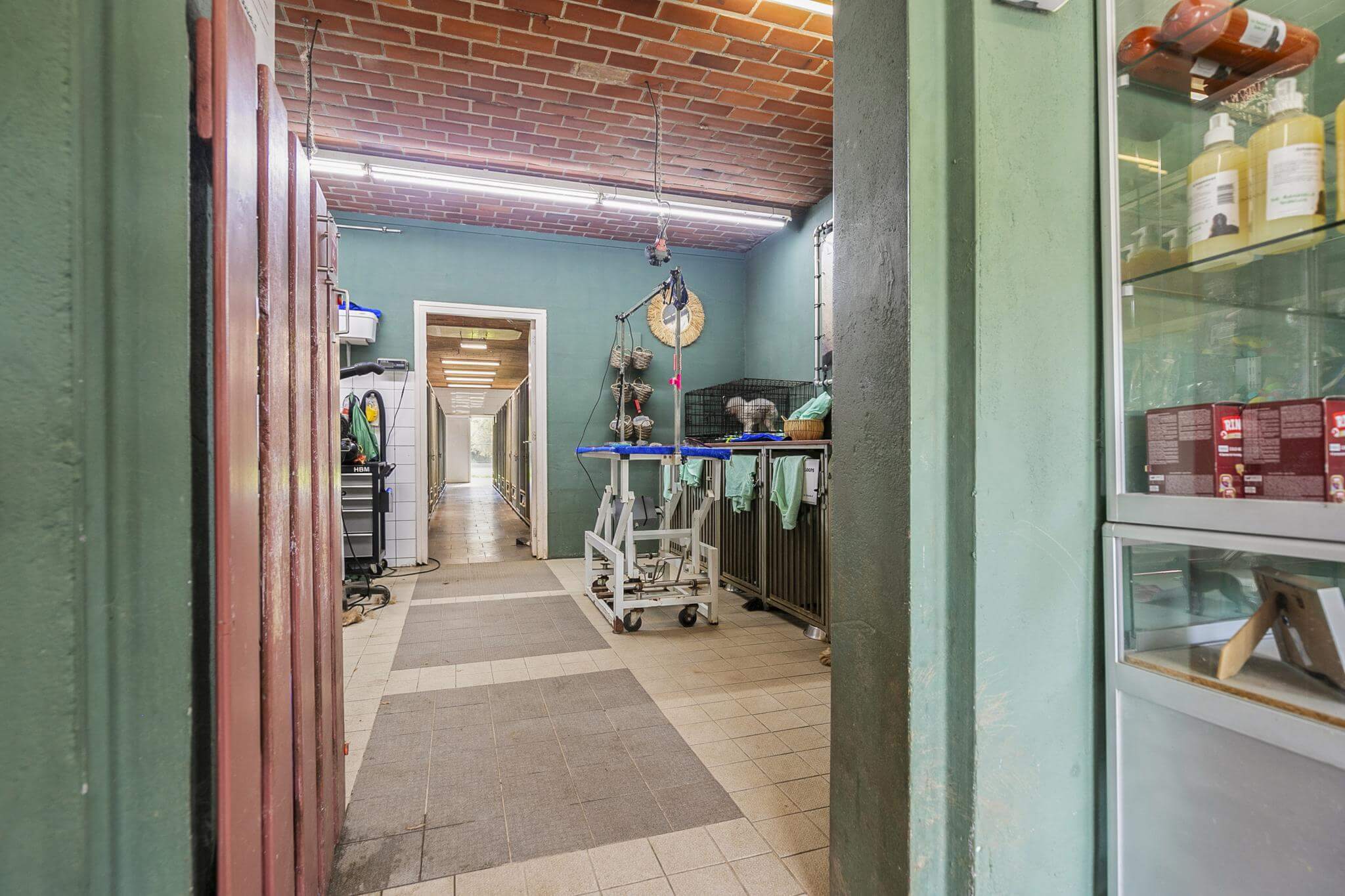 De bedrijfsruimte: De aangebouwde bedrijfsruimte beschikt over opslagruimtes, een ontvangstruimte met baliefunctie, een was-/verzorgingsruimte en vervolgens de kennels. De kennelruimte is praktisch van opgezet en geheel biedt volop mogelijkheden voor diverse bedrijfsmatige activiteiten. Door de directe verbinding met het woonhuis is de bedrijfsruimte eenvoudig te bereiken, wat het geheel zeer praktisch maakt.