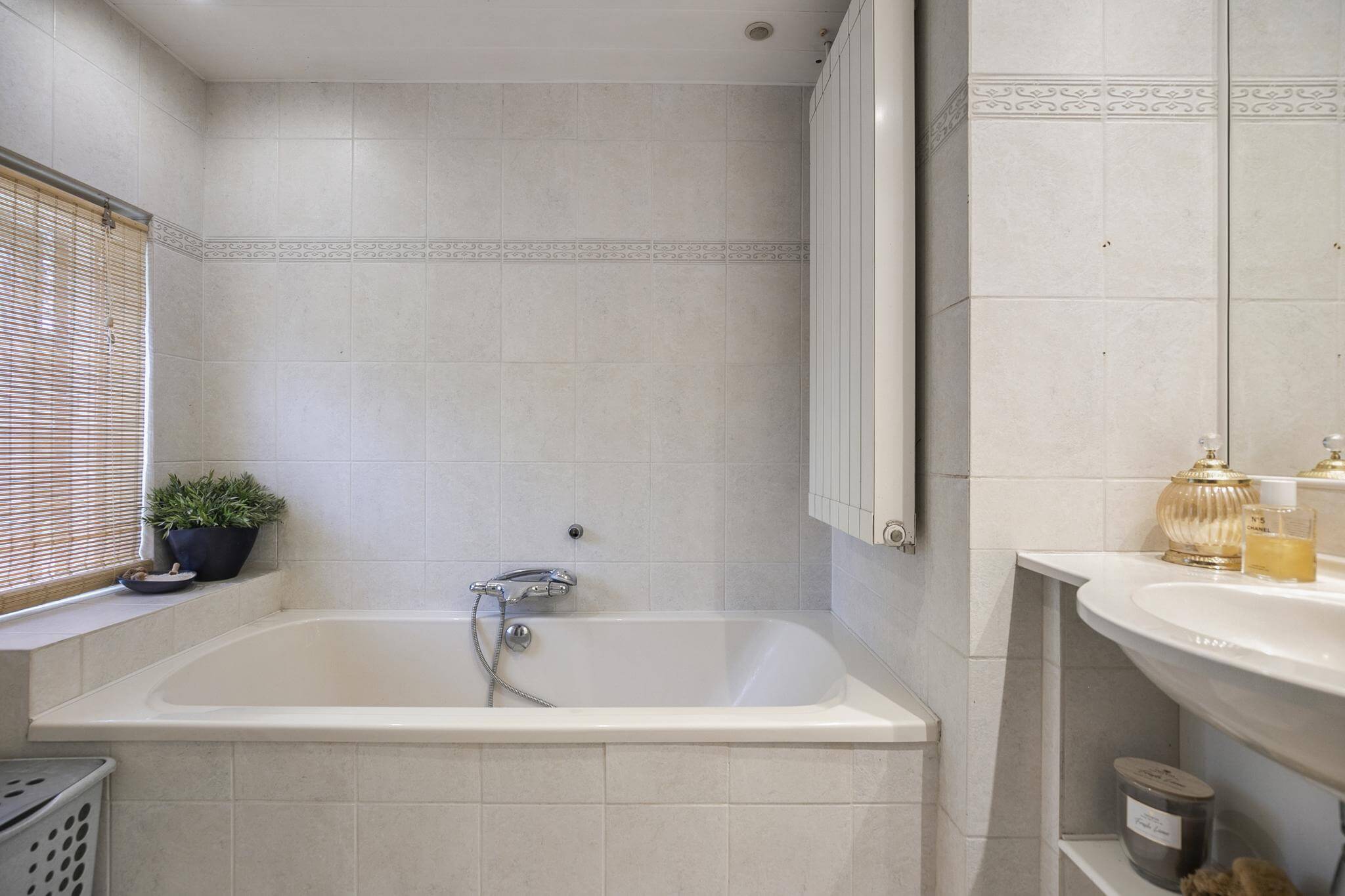Eerste verdieping: Op de eerste verdieping bevinden zich drie ruime slaapkamers, elk met voldoende lichtinval en ruimte. De master bedroom is extra ruim en beschikt over een handige inloopkast. Daarnaast is er een moderne badkamer, voorzien van een ligbad, douche en wastafel. Een apart toilet is aanwezig op de overloop, en er is een inloopkast voor extra opbergruimte.