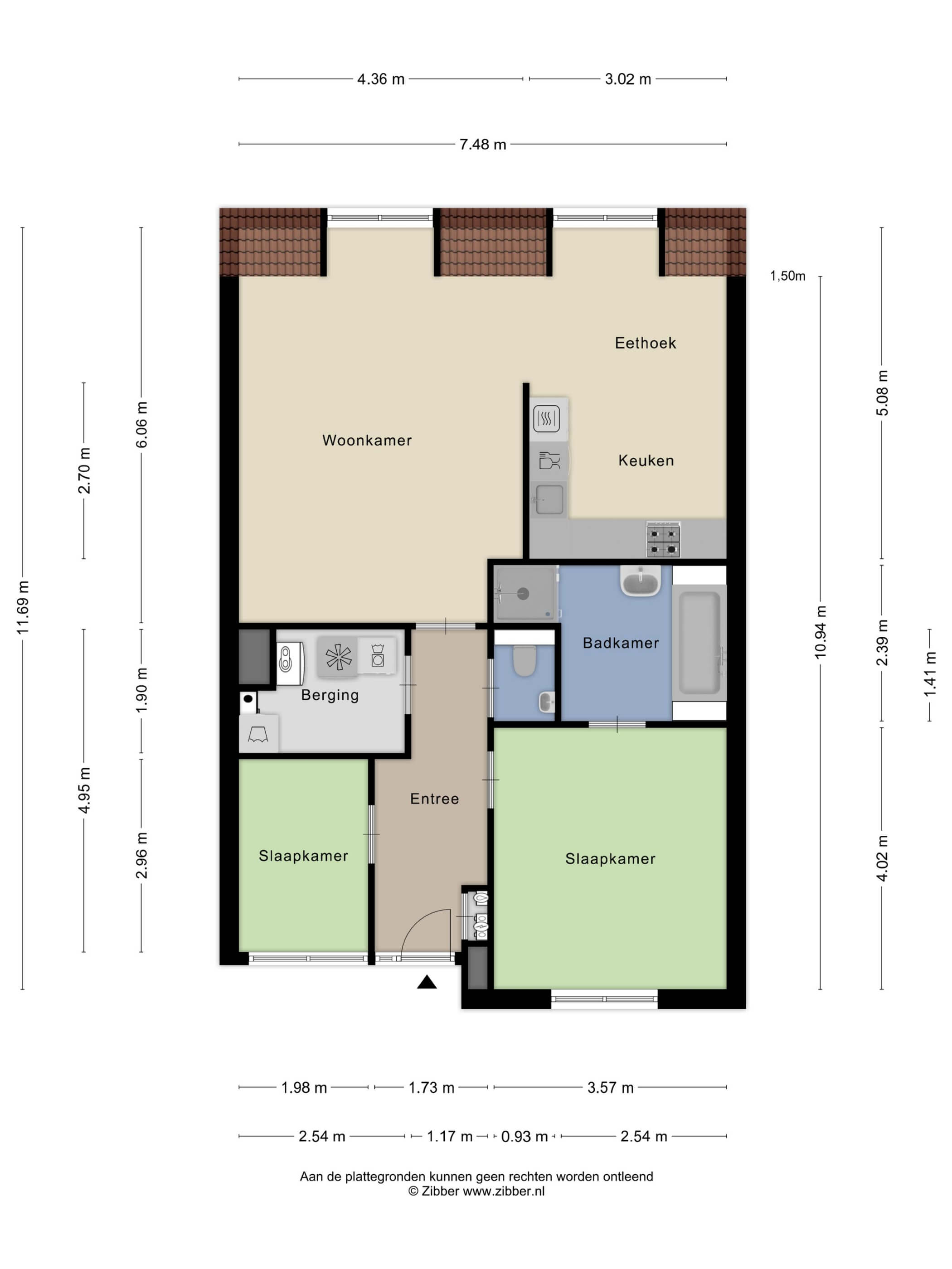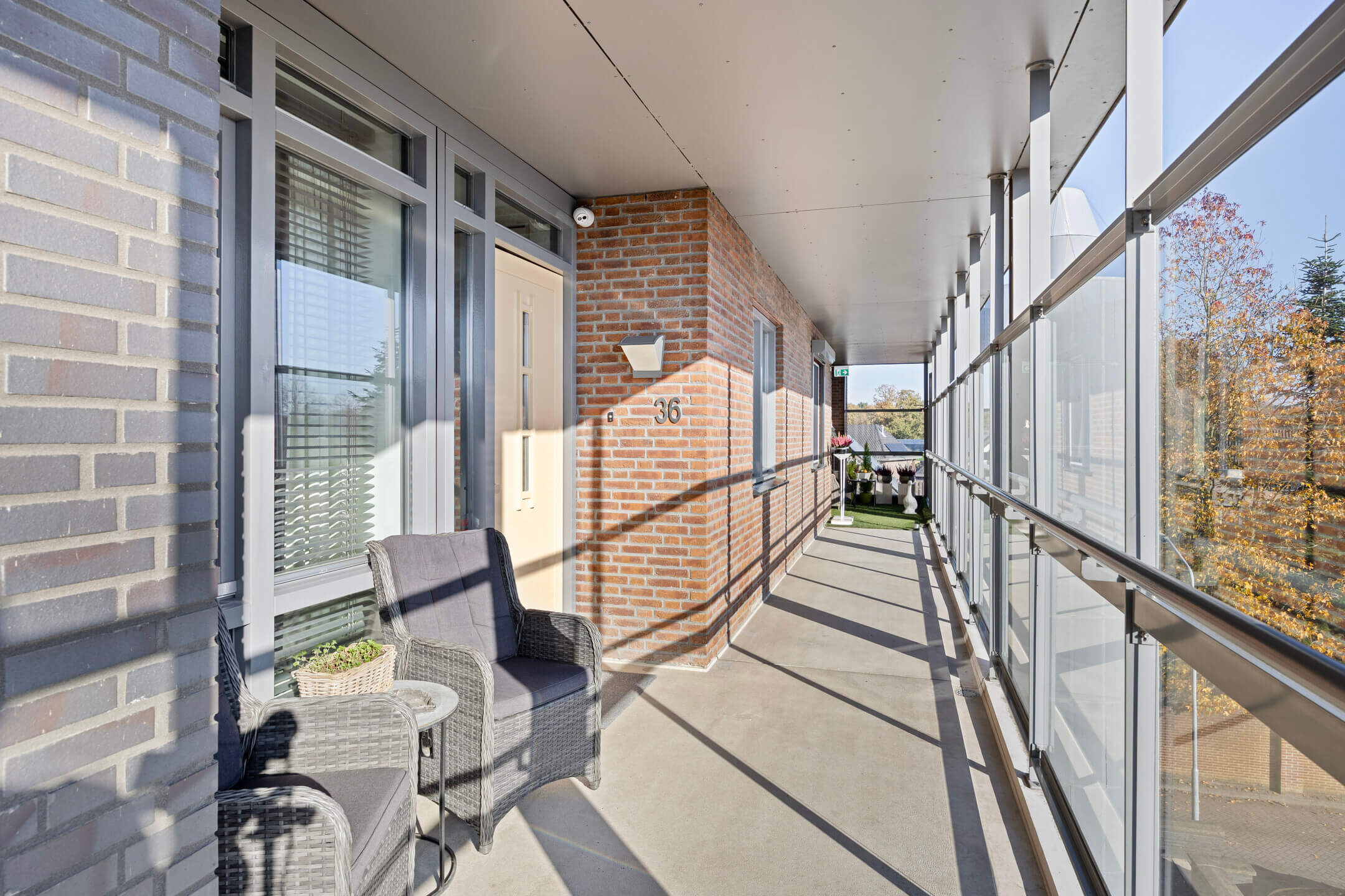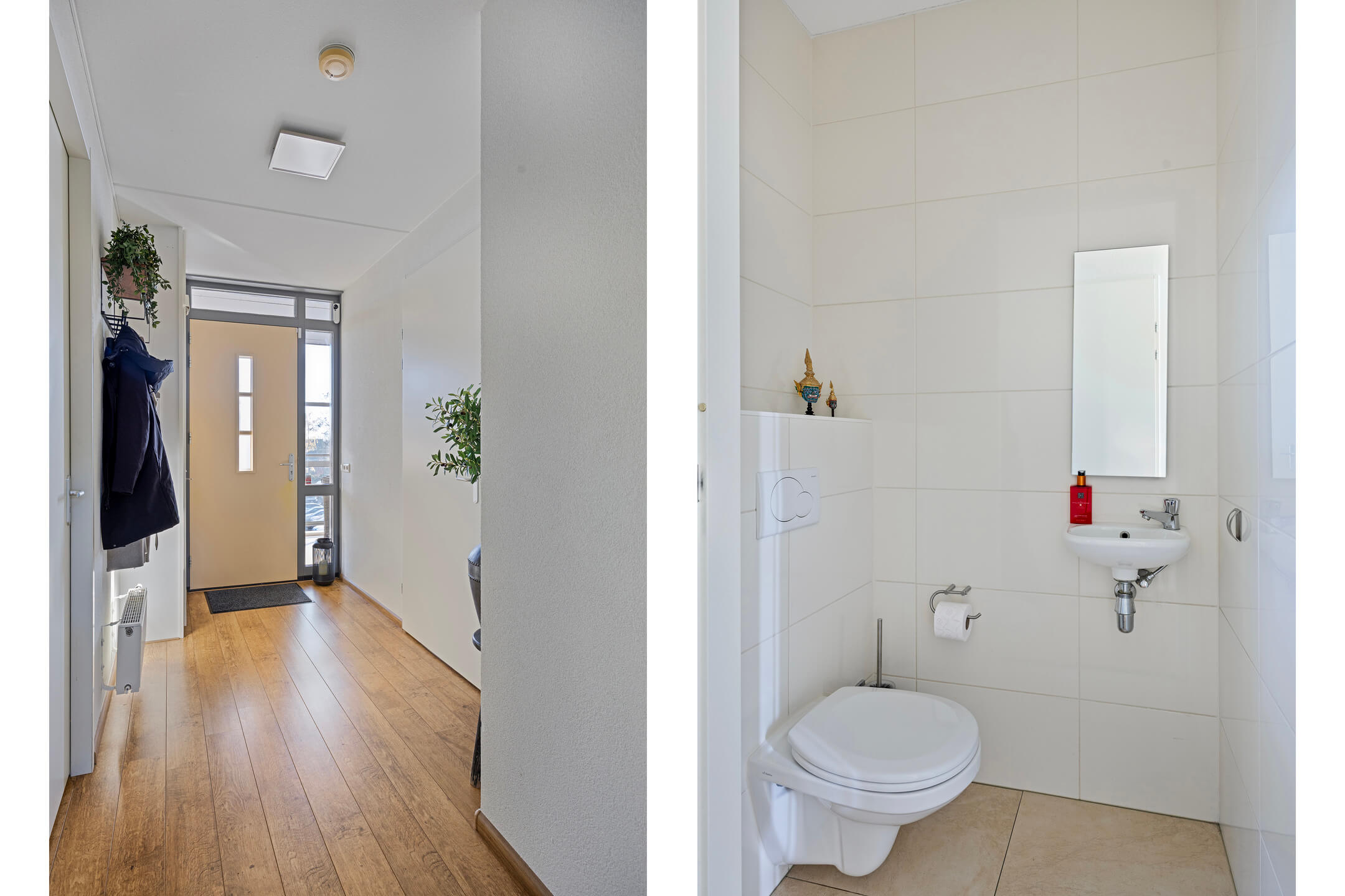 Bij binnenkomst kom je in de nette hal met direct toegang tot het moderne en zeer ruime toilet, de twee slaapkamers, berging met de technische installaties en woonkamer. De woonkamer is ruim en prettig ingedeeld met een zit- en eetgedeelte en staat in open verbinding met de eigentijdse keuken. Extra noemenswaardig is de hoeveelheid licht in de woonkamer!