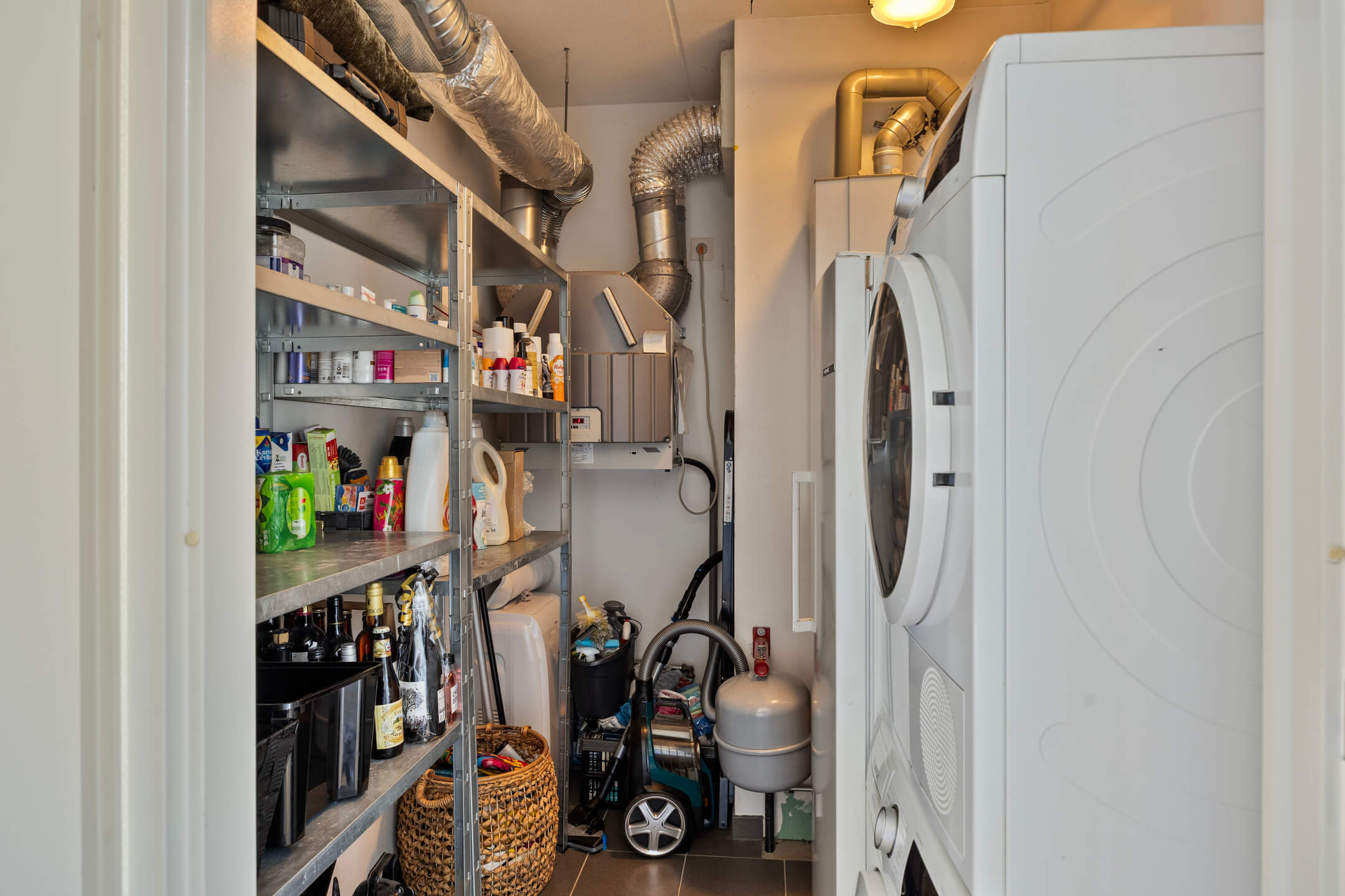 Daarnaast is er een inpandige berging met de aansluitingen voor wasmachine en droger, de opstelling van de cv-ketel en de WTW installatie.