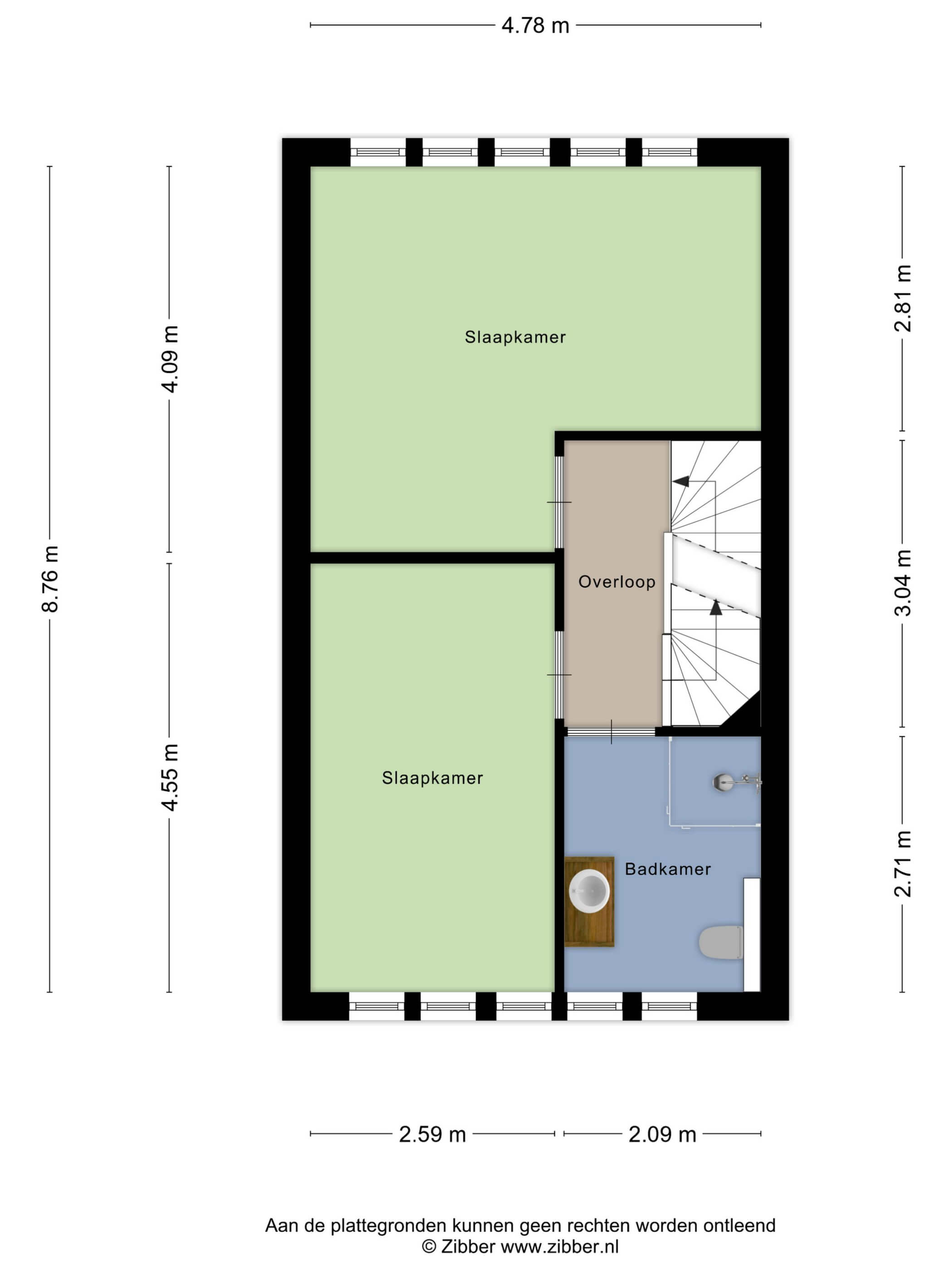 De overloop geeft toegang tot twee ruime slaapkamers. De hoofdslaapkamer is indien gewenst eenvoudig op te delen in twee praktische (slaap)kamers. De moderne badkamer is voorzien van vloerverwarming, een ruime douche, toilet en wastafelmeubel.