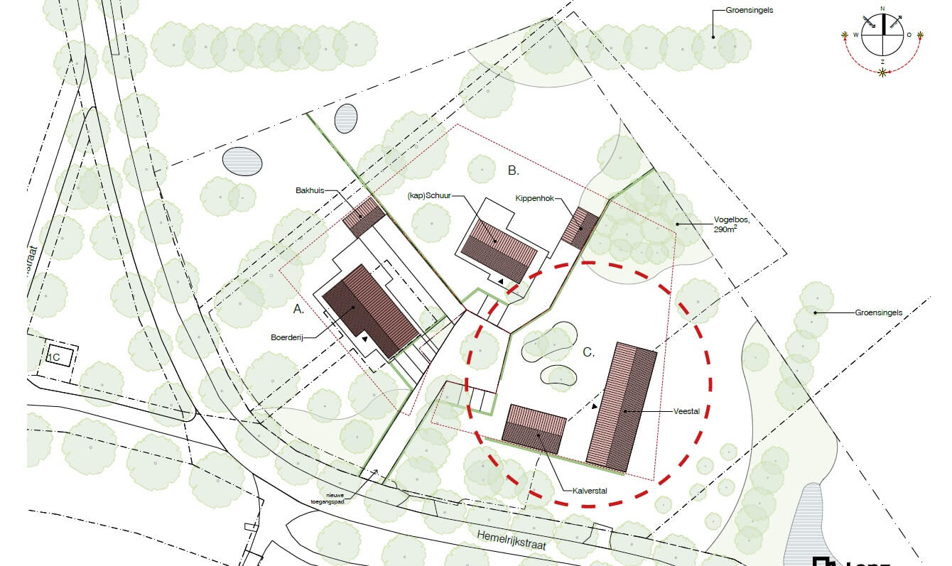 De bouwkavel kent zijn oorsprong in het herstellen van het historische karakter. Kenmerkend voor de omzoming van erven zijn het voorkomen van geschoren hagen, boomgaardjes, bomengroepen of solitaire bomen nabij bebouwing, maar ook lijnvormige elementen als groensingels en bomenrijen. De bouwkavel is thans bestemd voor 'Wonen', wat inhoudt dat u hier een vrijstaande woning kunt bouwen alsmede een bijgebouw. Samen met bebouwing van de ander kavels op het woonerf vormt deze bebouwing één groot boerenerf.