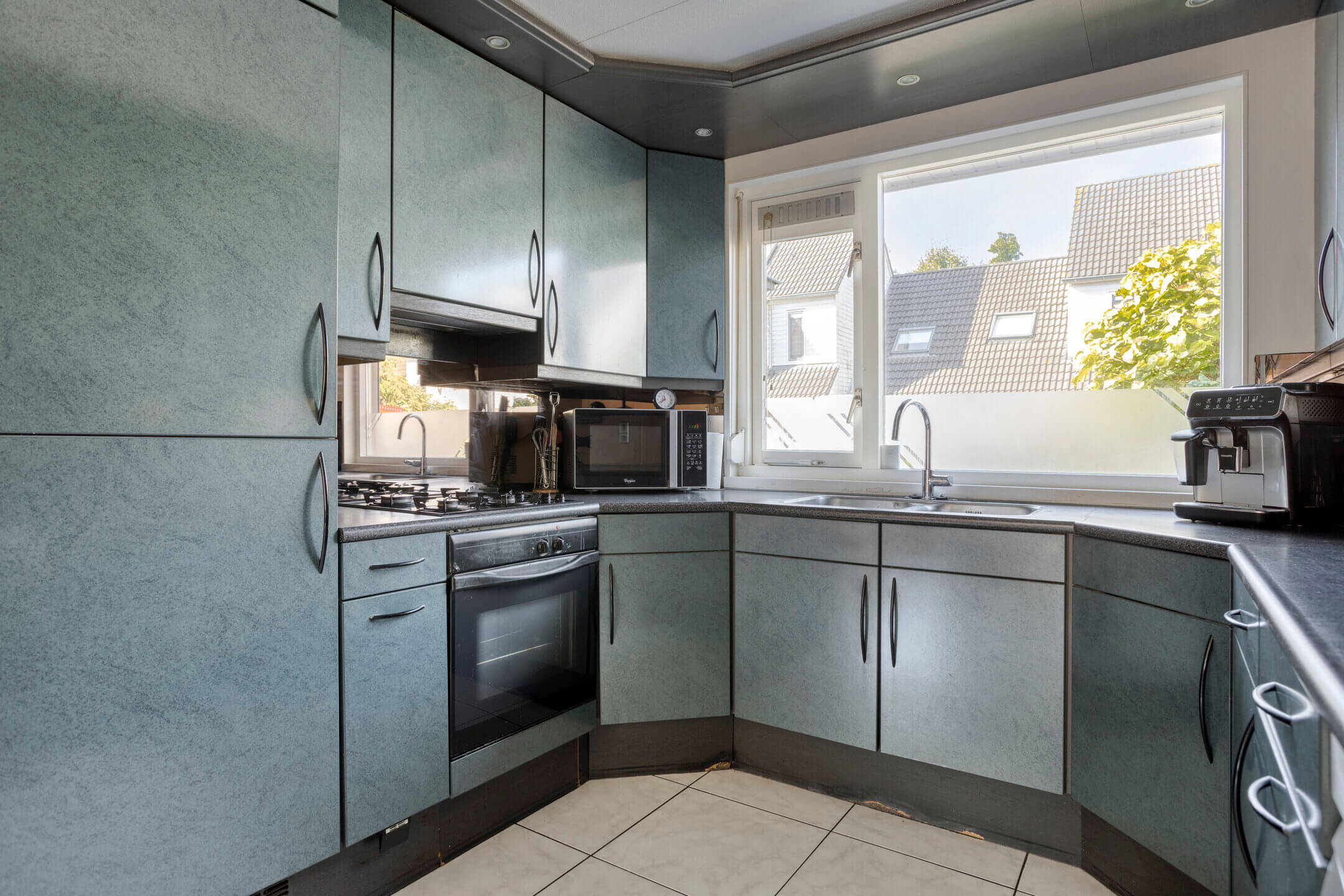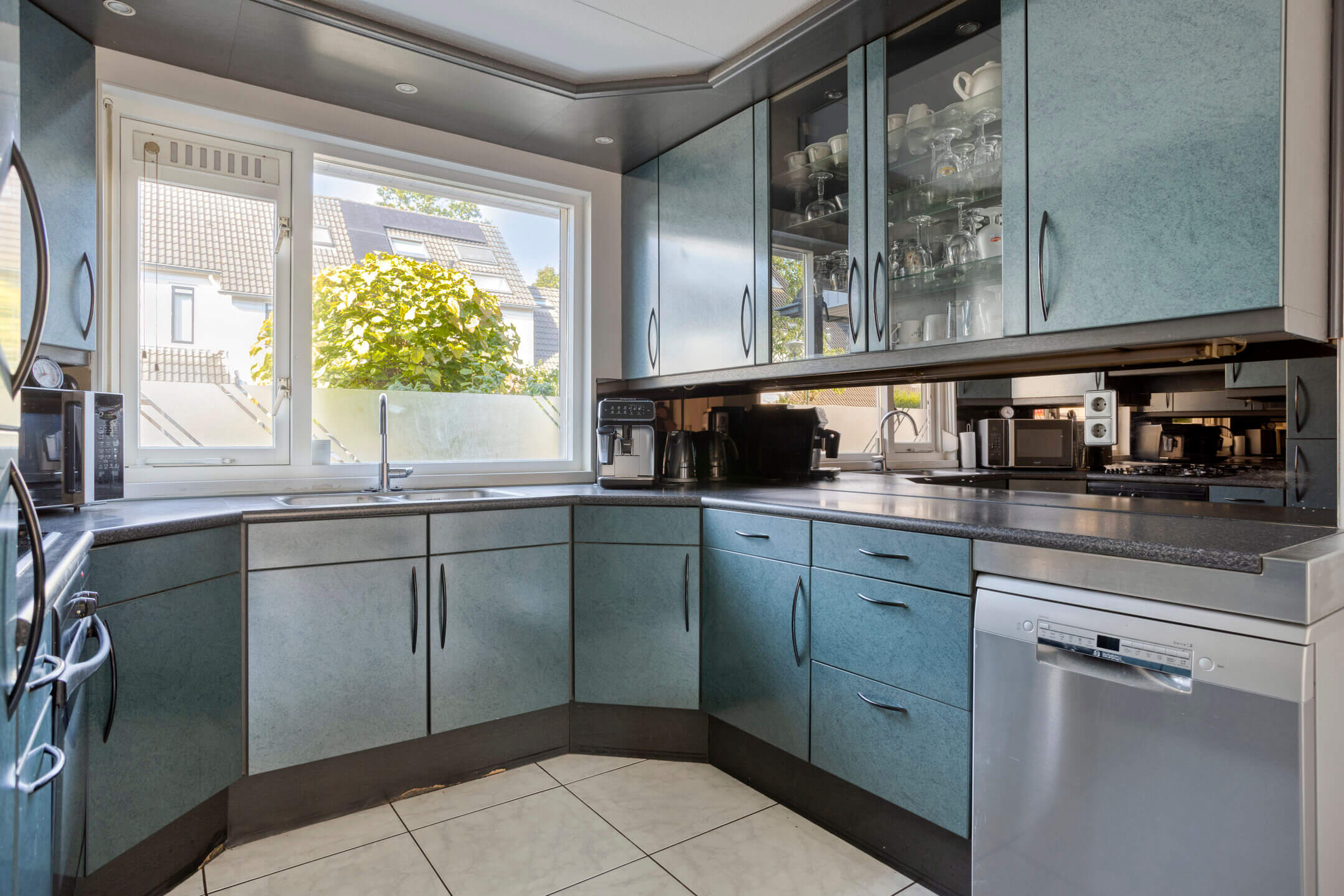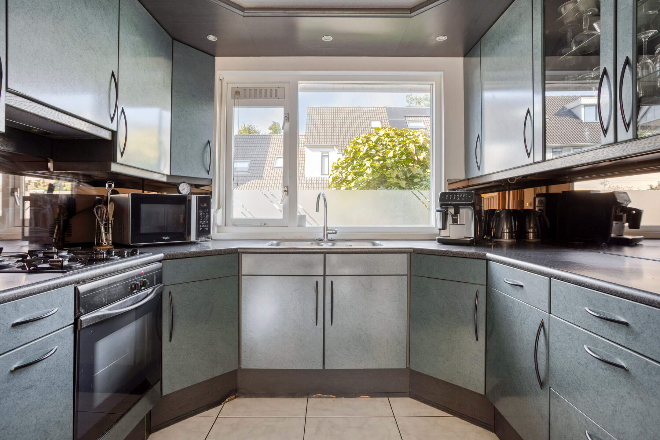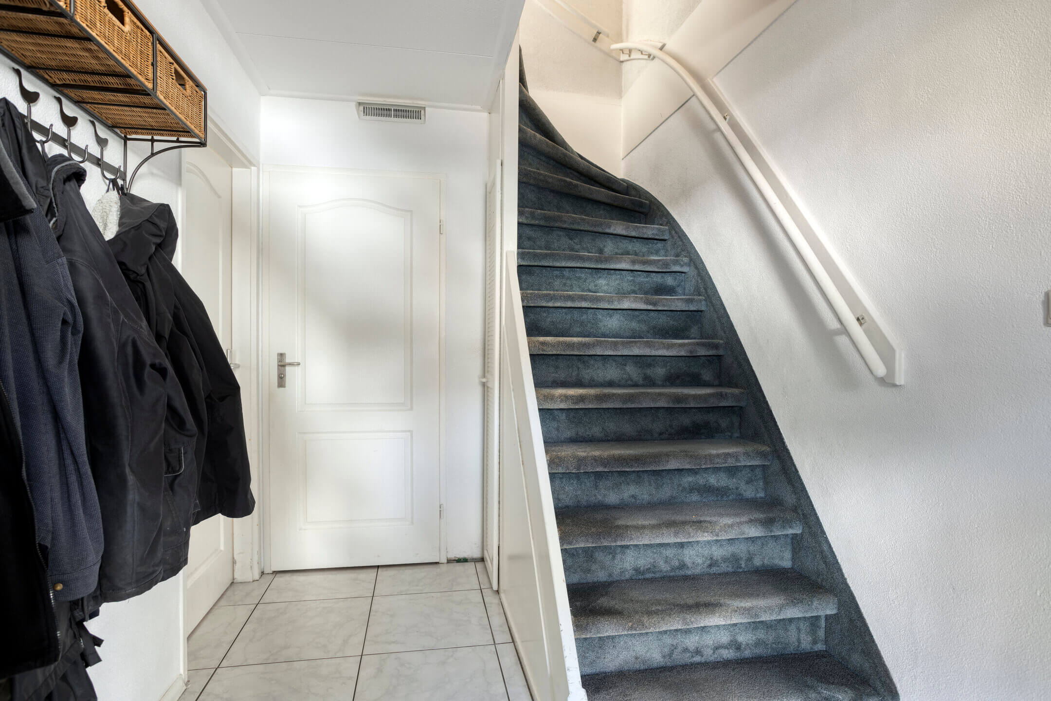 Entree/hal met meterkast, toilet (met fontein), trapkast, trapopgang naar de eerste verdieping en toegang tot de woonkamer. De lichte woonkamer biedt een prettige leefruimte en beschikt over een open keuken met boven- en onderkasten en diverse inbouwapparatuur. De living is ruim opgezet en heeft een fraai uitzicht op de groene achtertuin.