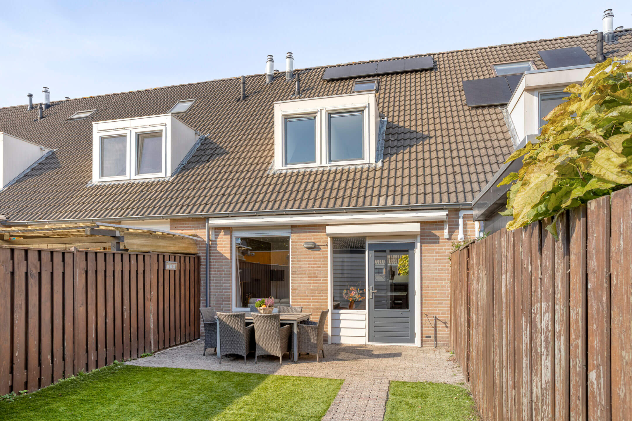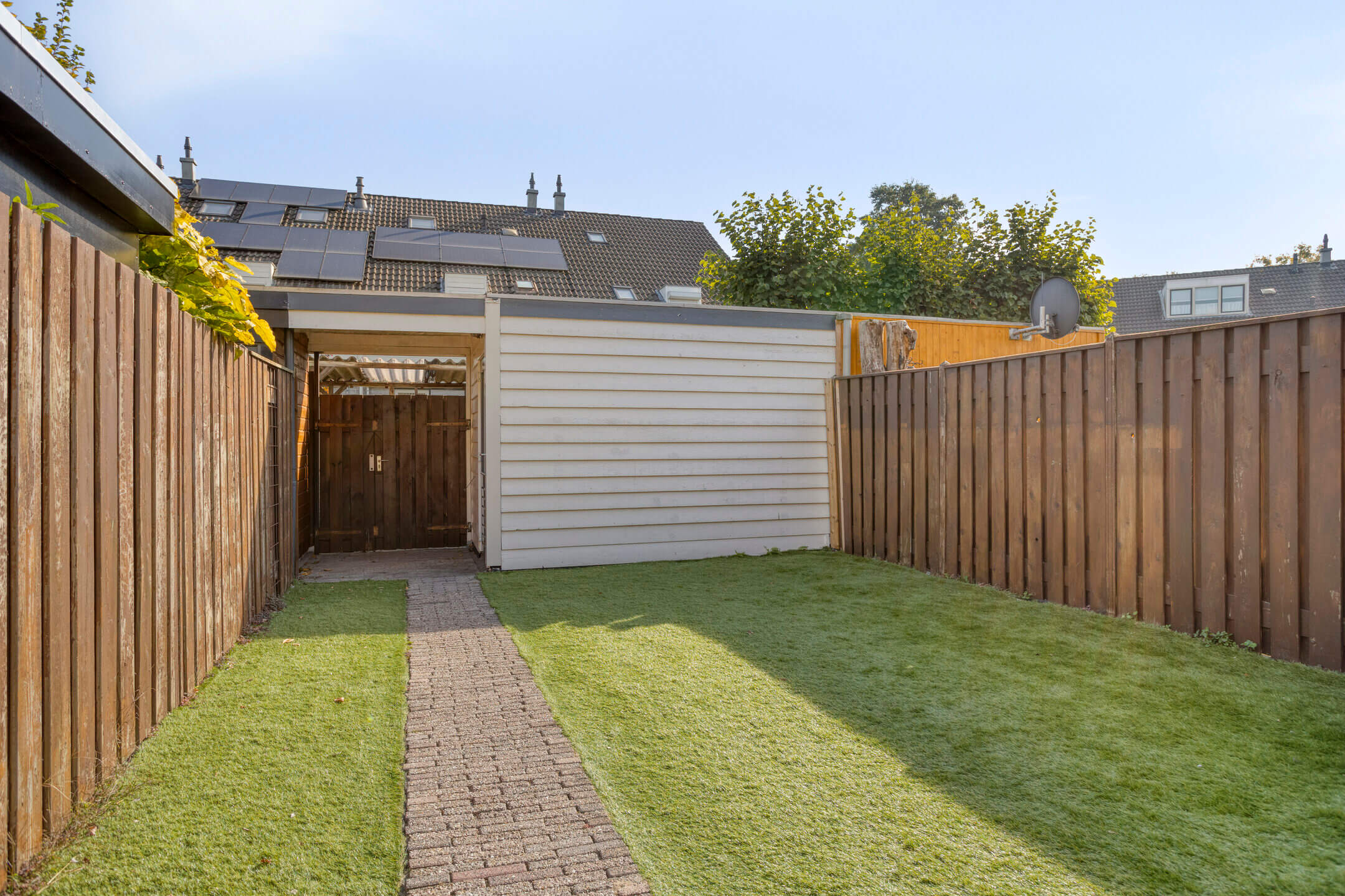 De groene en verzorgde achtertuin is een heerlijke plek om van het buitenleven te genieten, van het vroege voorjaar tot het late najaar. Bij warm weer biedt de recent vernieuwde zonneluifel aangename schaduw. Achter in de tuin bevindt zich een berging en een achterom, ideaal voor het stallen van fietsen of het gemakkelijk verplaatsen van containers.