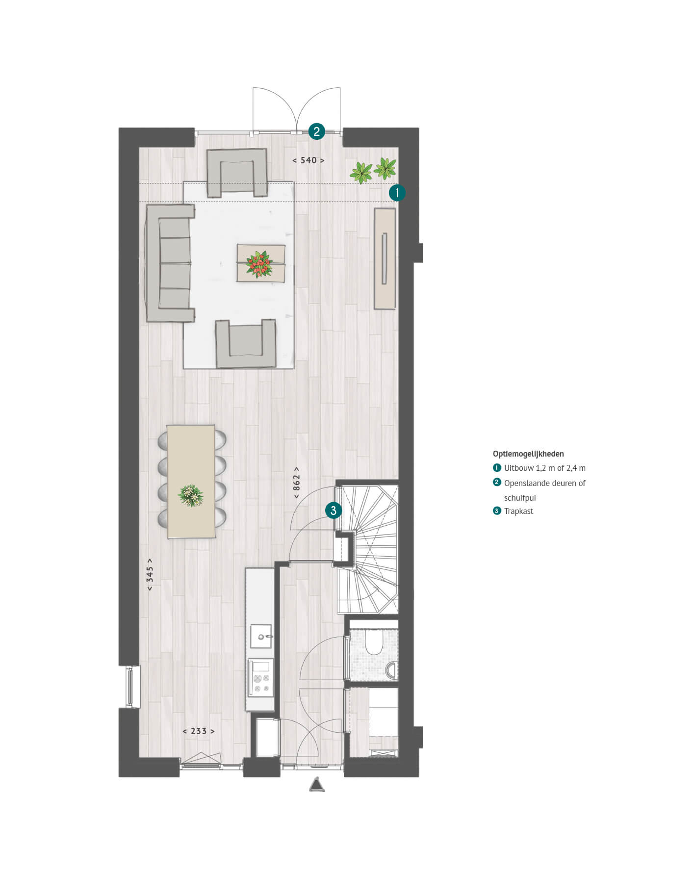 Indeling met extra slaapkamer, 4 slaapkamers mogelijk!