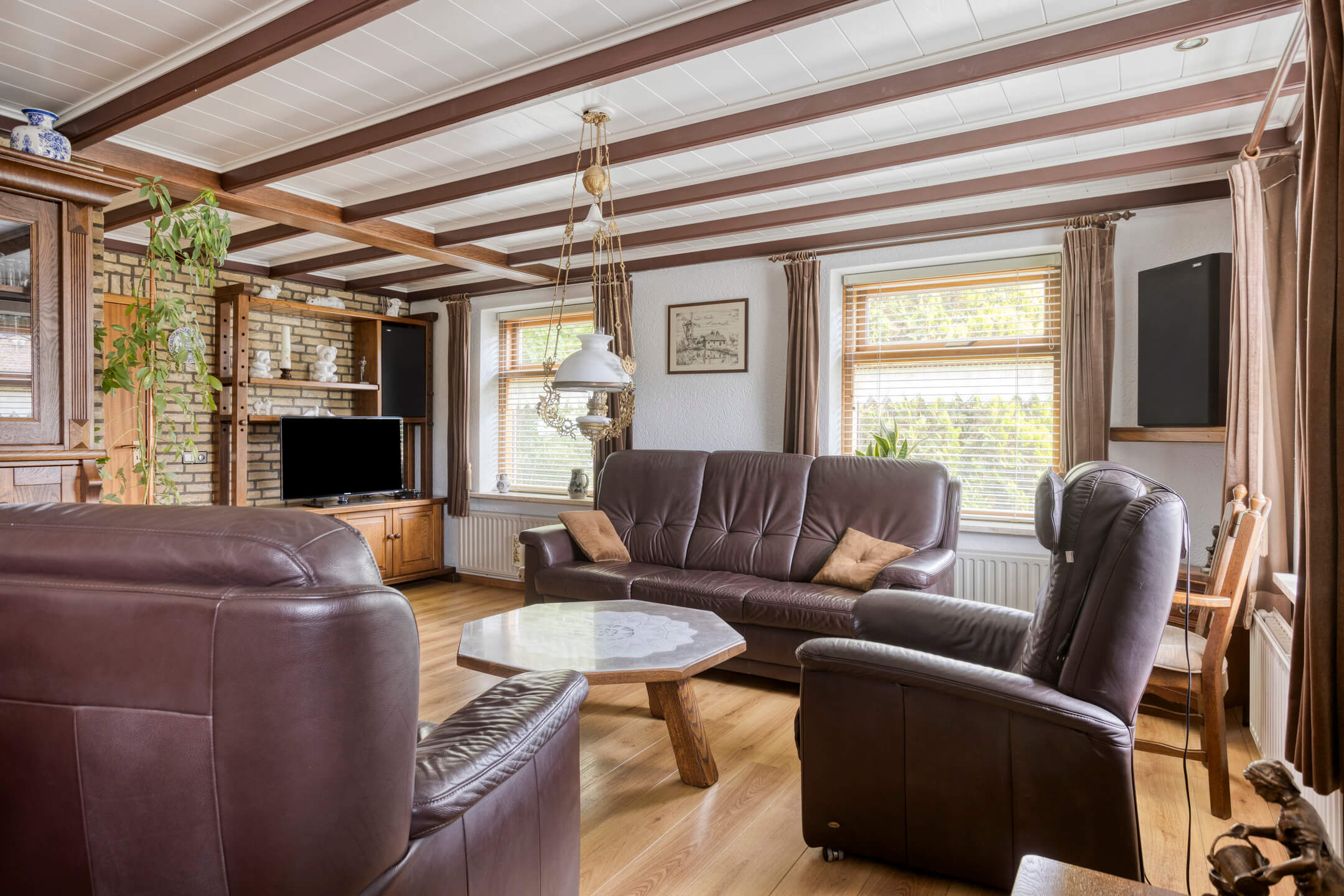Via de riante oprit bereikt u de woning. De entree aan de voorzijde biedt toegang tot de hal met garderobe, trapopgang en meterkast. Vanuit de hal komt u in de lichte woonkamer, voorzien van een laminaatvloer, houten balkenplafond met inbouwspots en diverse raampartijen die zorgen voor veel daglicht. Er is volop ruimte voor een gezellige zithoek en eethoek.