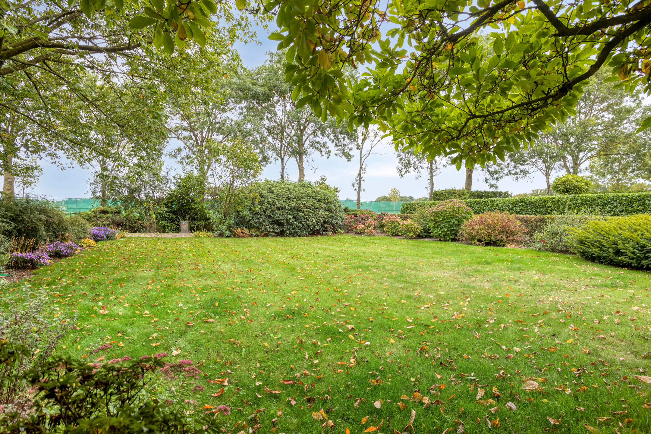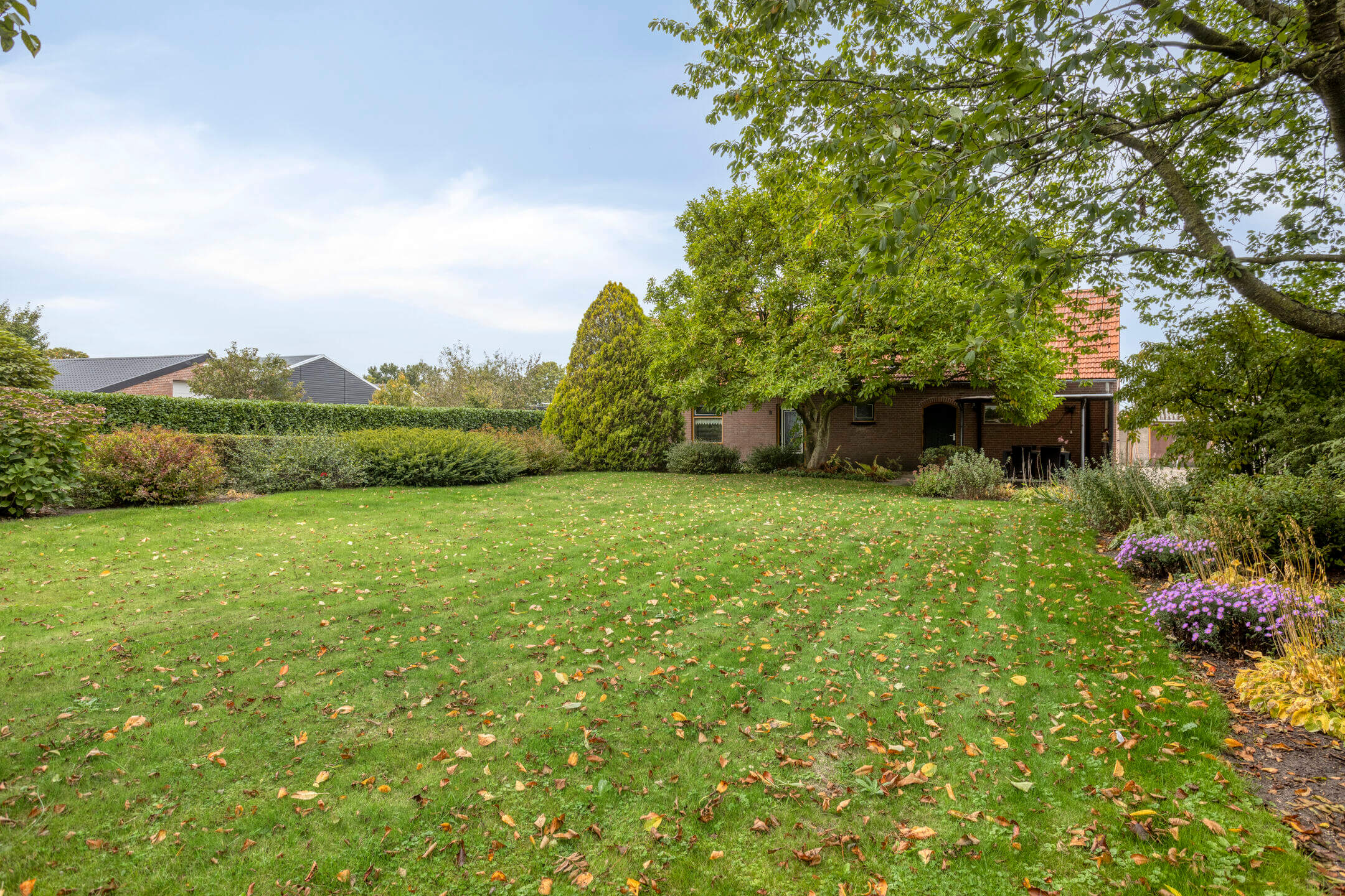 Rondom de woning ontvouwt zich een prachtig aangelegde tuin die rust en privacy ademt. Aan de voor- en zijkant zorgen weelderig groen, volwassen bomen en fraaie beplanting voor een idyllische, natuurlijke sfeer. De tuin vormt een schitterende omlijsting van de woning en biedt het hele jaar door een mooi uitzicht. De achterzijde van de woning is voorzien van verharding en biedt daarmee praktische ruimte voor een terras of erf. Een unieke kans om landelijk te wonen op een royaal perceel, met alle gemakken van dorpse voorzieningen in de nabijheid.