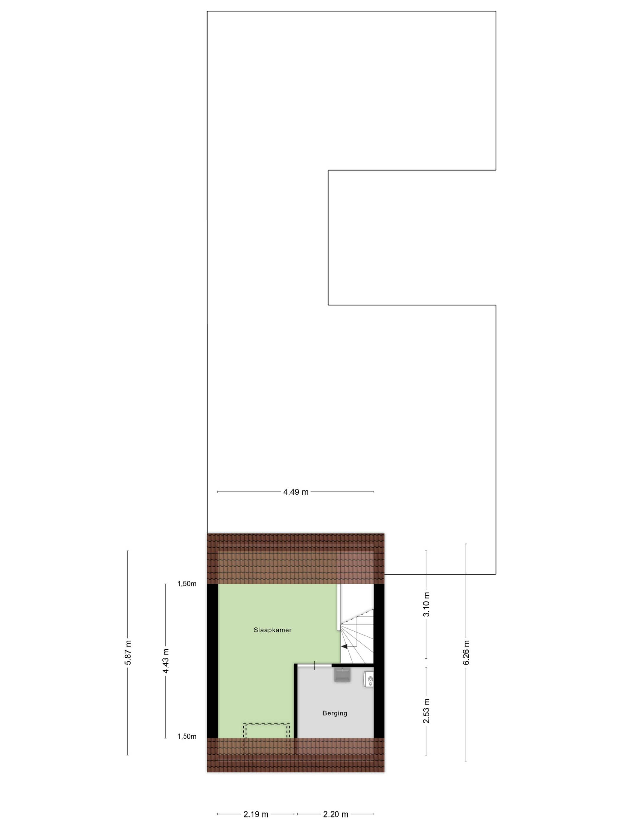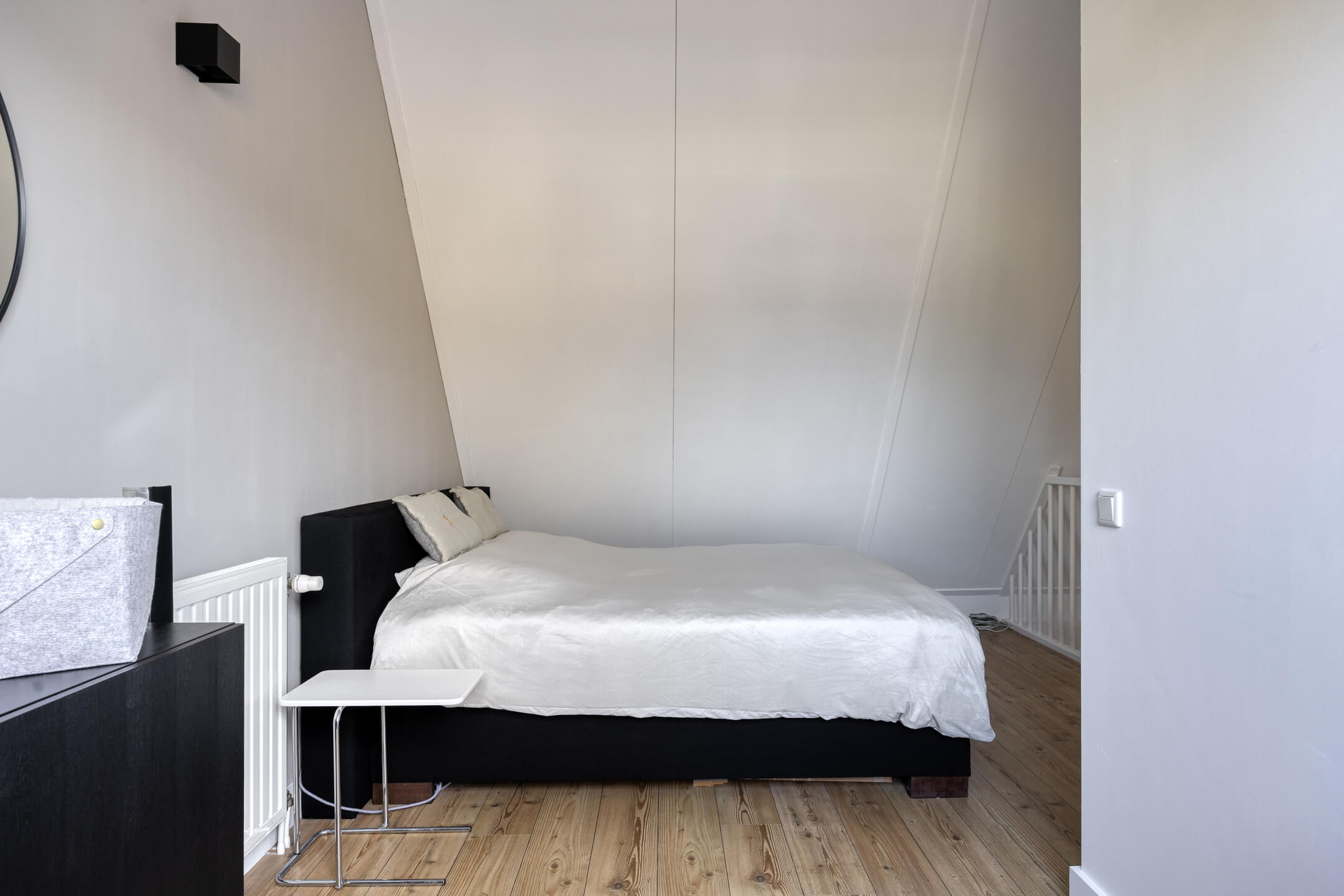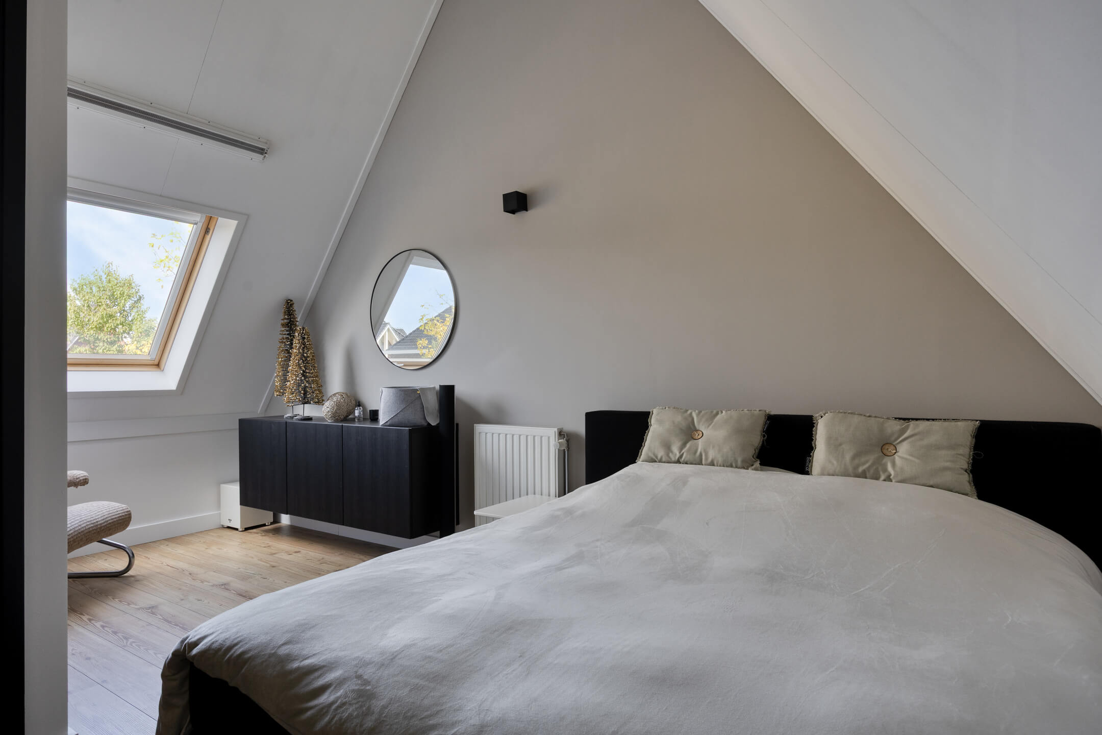 Via de vaste trap met verlichting bereikt u de eerste verdieping. Hier bevindt zich een ruime slaapkamer, open tot in de nok en voorzien van een groot dakraam. Deze verdieping is ideaal als logeerkamer, hobbyruimte of werkplek. Daarnaast is er nog een ruime berging met de cv-installatie en een fonteintje met meubel.