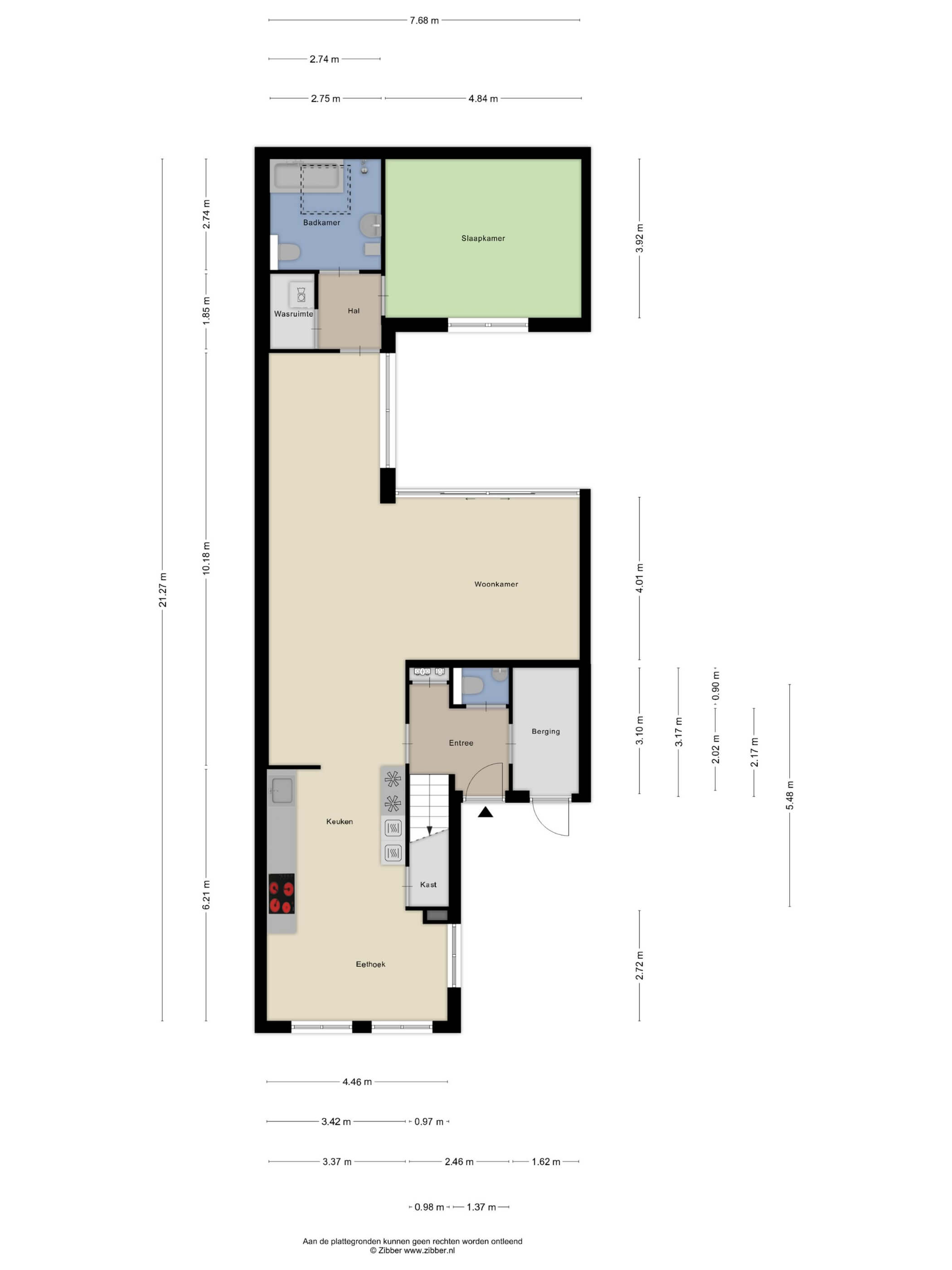 In de wasruimte zijn de witgoedaansluitingen aanwezig.