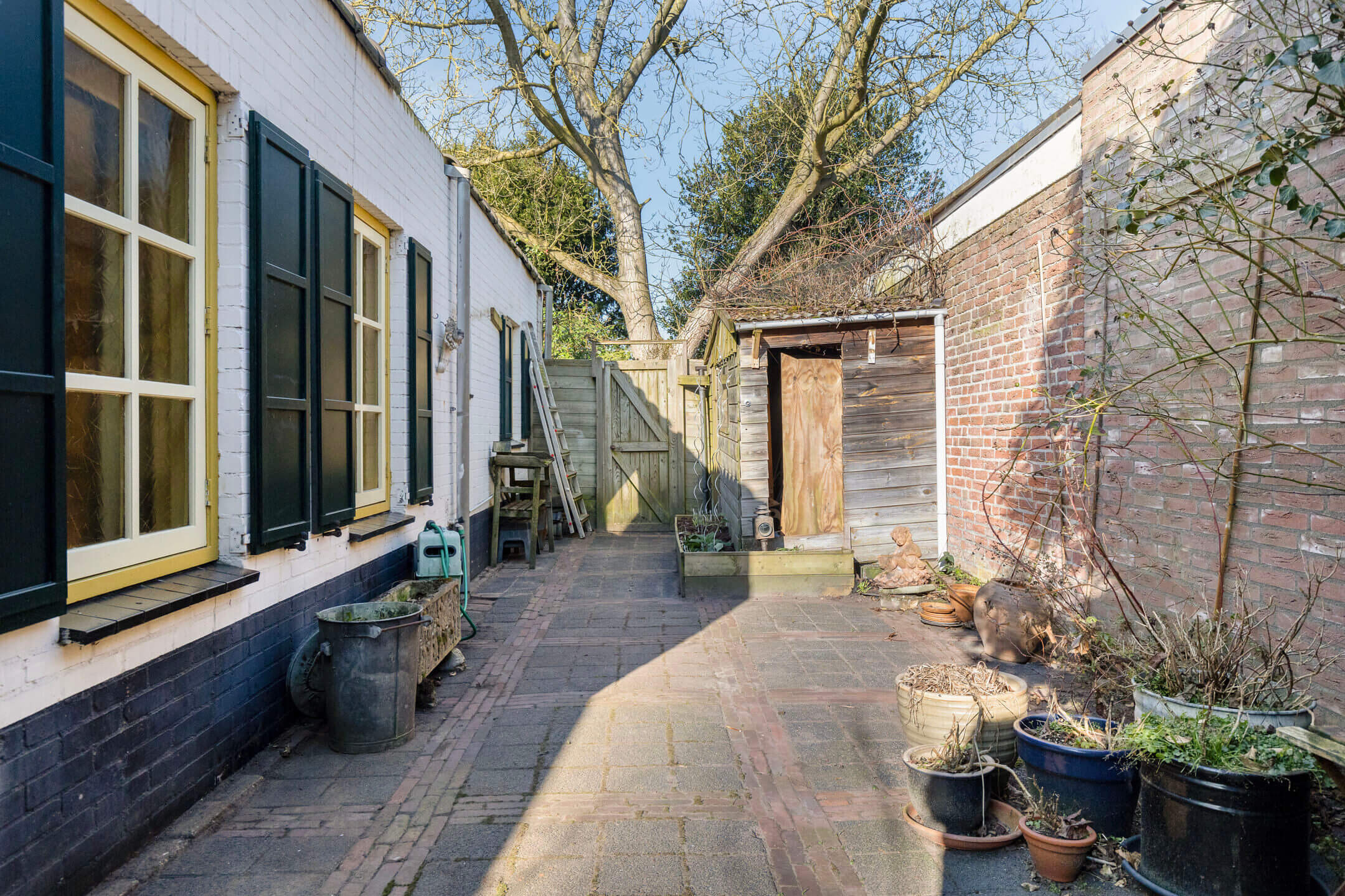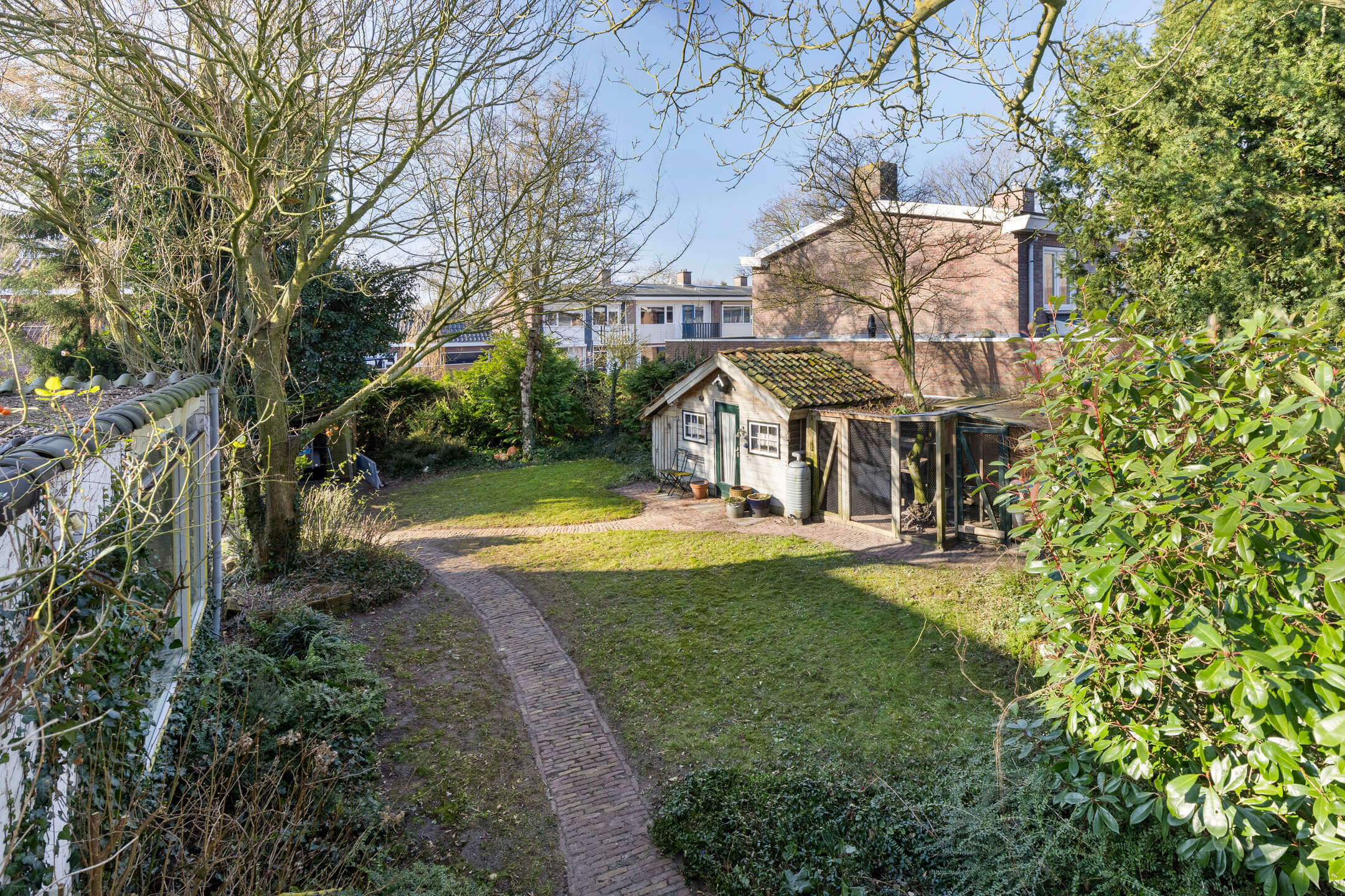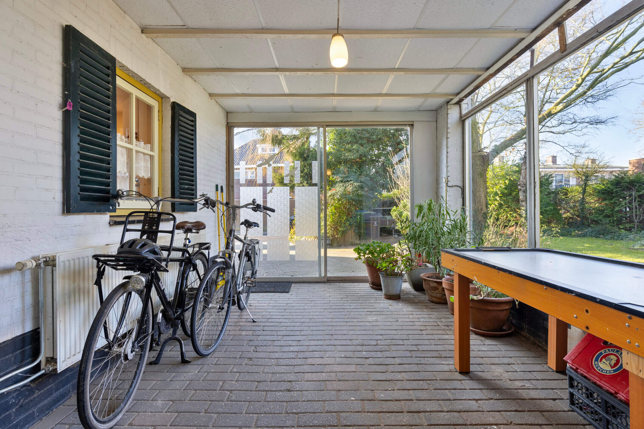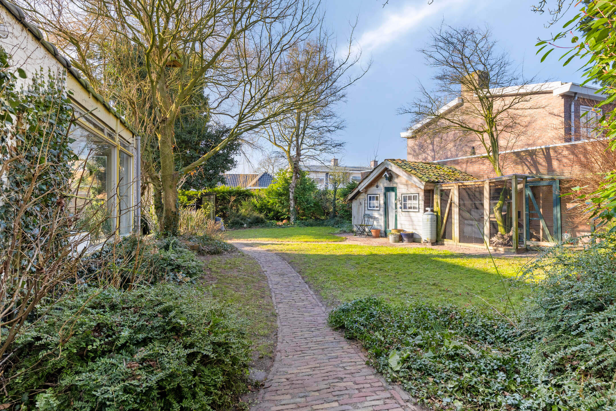 Via de ruime oprit bereikt u de overkapping, die aan de voor- en zijkant is voorzien van glas. Deze overdekte ruimte is perfect voor het stallen van fietsen of tuingereedschap. Vanuit hier heeft u toegang tot de garage, waar diverse werkbanken en kasten aanwezig zijn, ideaal voor uiteenlopende doeleinden. De riante tuin is parkachtig aangelegd met volwassen bomen, romantische wandelpaden, riante vijver met vlonder en een charmant houten tuinhuis (8 m²) met daaraan vast een kippenren.