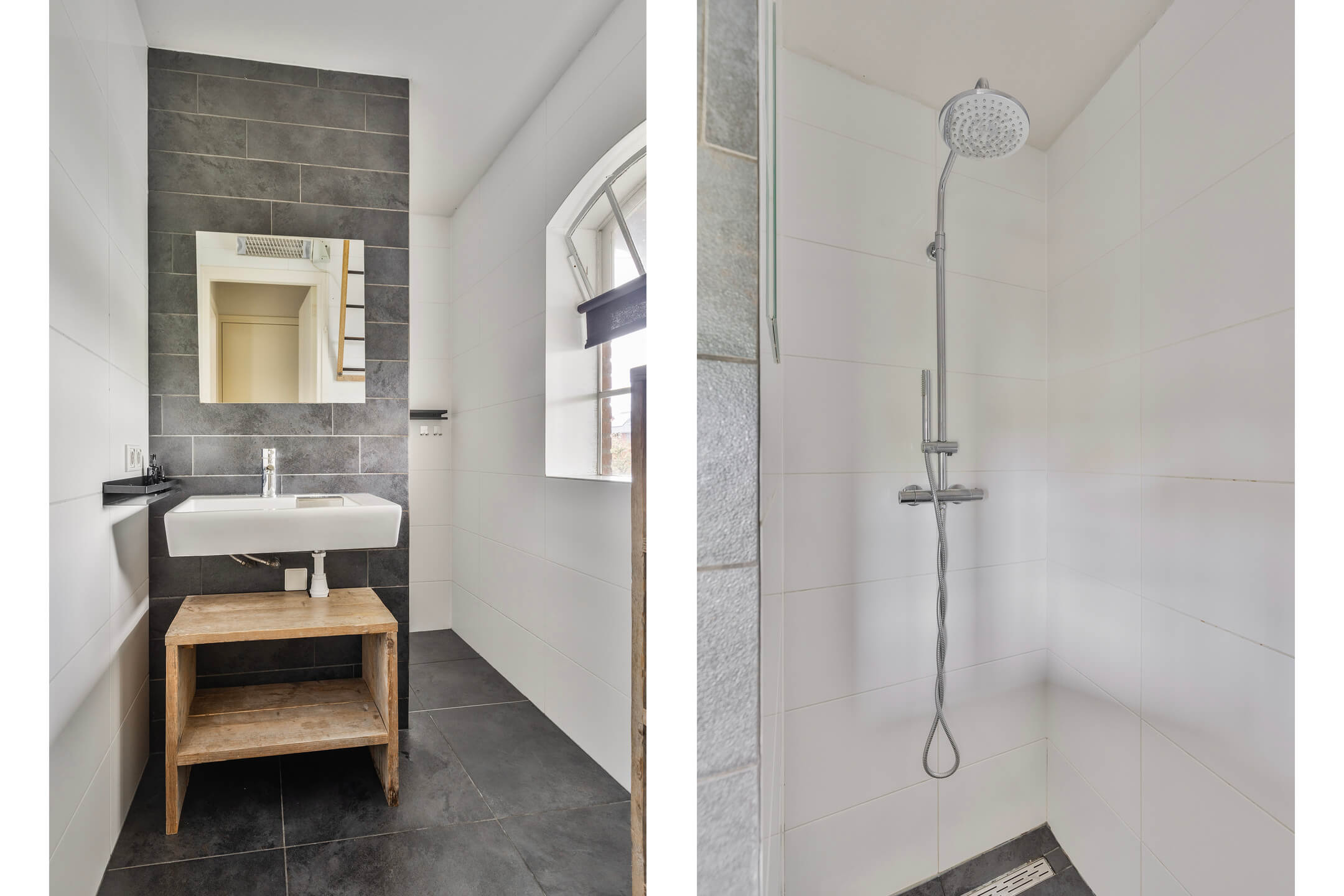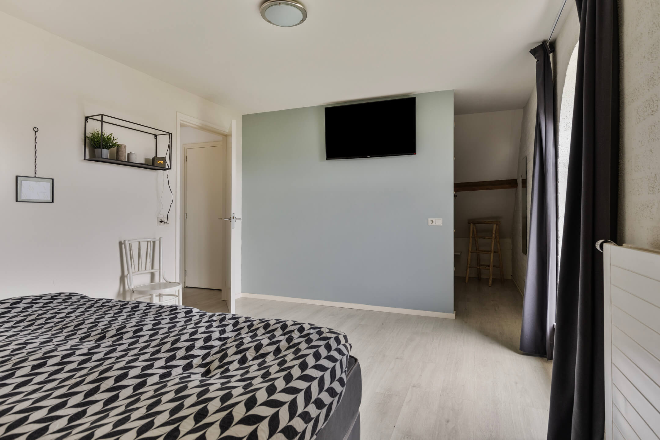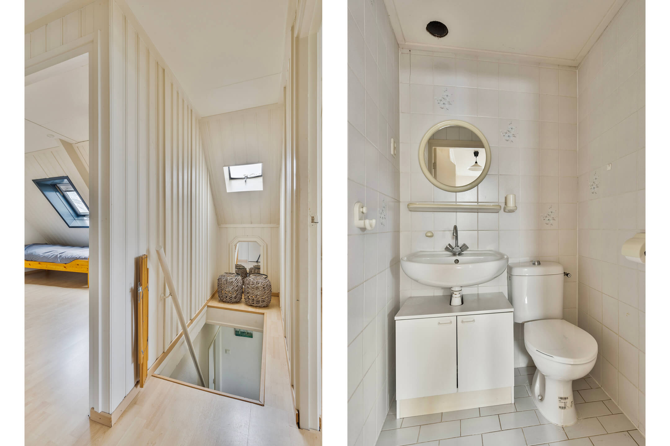 De verdieping van de woning beschikt over drie slaapkamers, een apart toilet en een bergzolder. De masterbedroom heeft een inloopkast en de overige slaapkamers zijn strak afgewerkt met inbouwspots en vaste kasten. Ideaal voor gasten, familie of als zelfstandige woonunit.