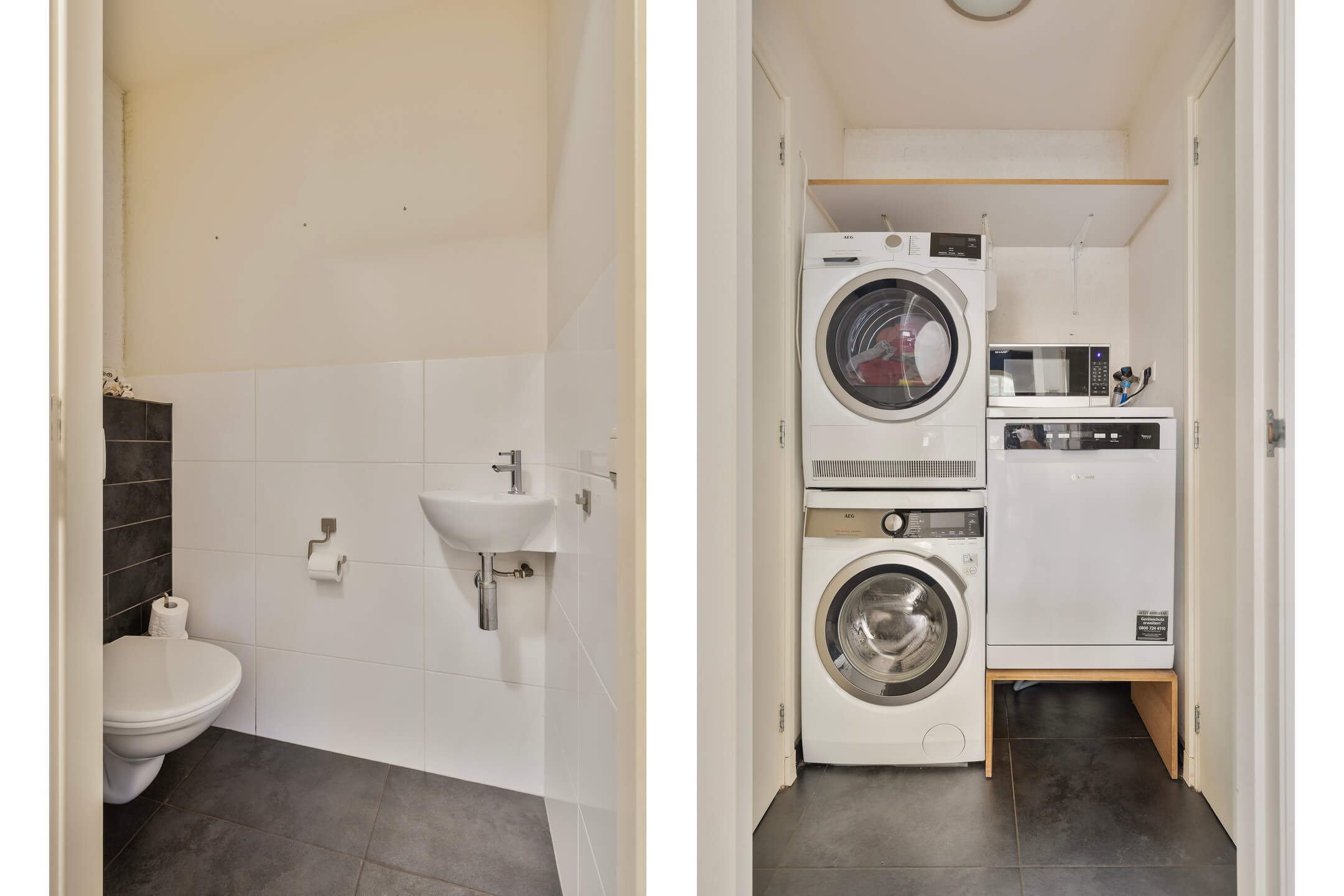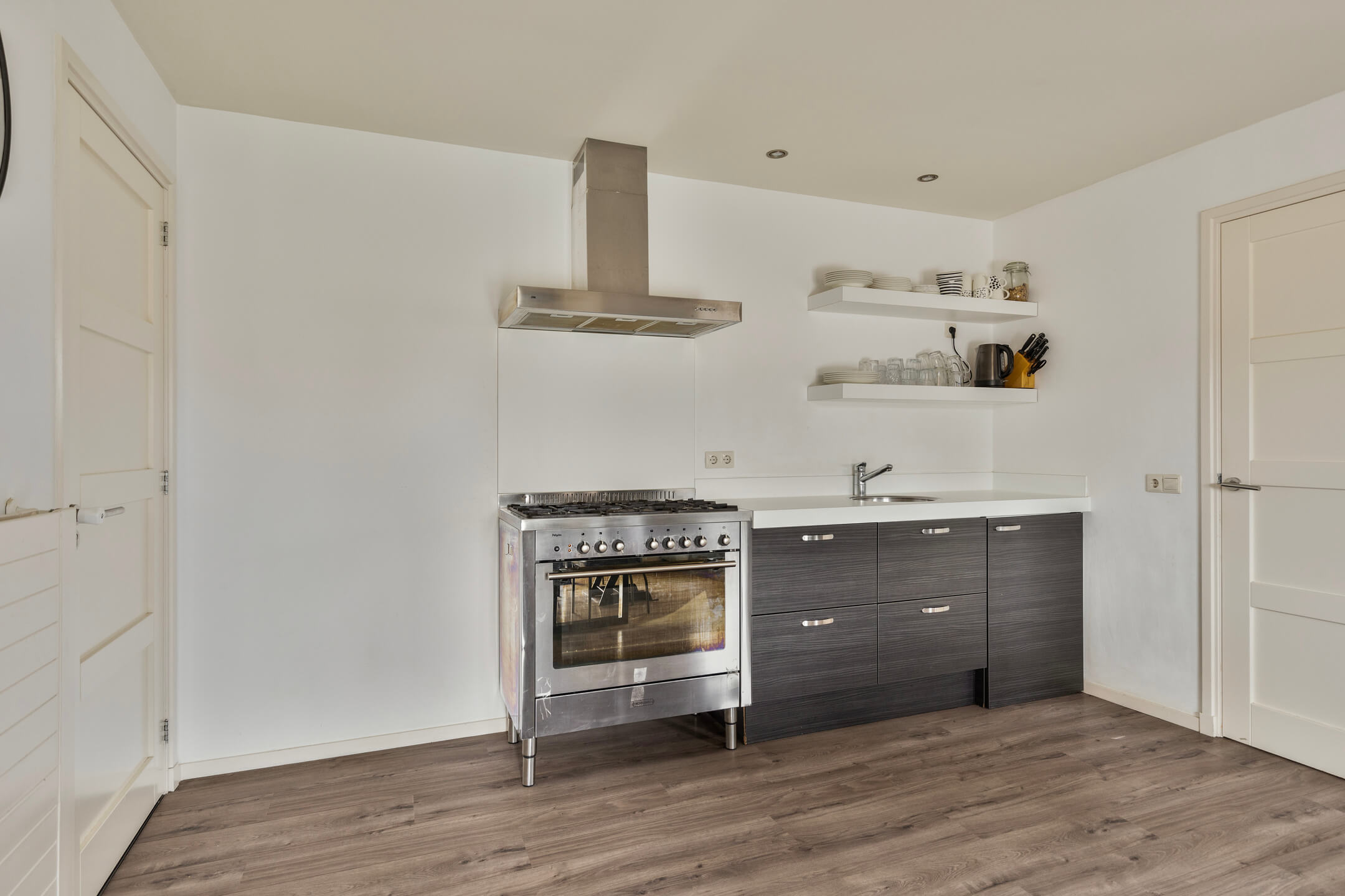 De inpandige woning heeft een eigen entree en biedt veel privacy. Bij binnenkomst valt direct de lichte en moderne uitstraling op. De open keuken is voorzien van een fornuis en biedt toegang tot een praktische wasruimte, toilet en moderne badkamer met inloopdouche.