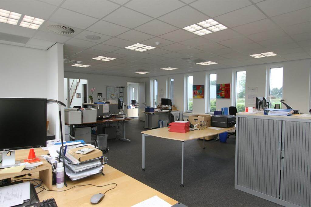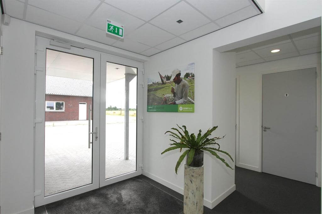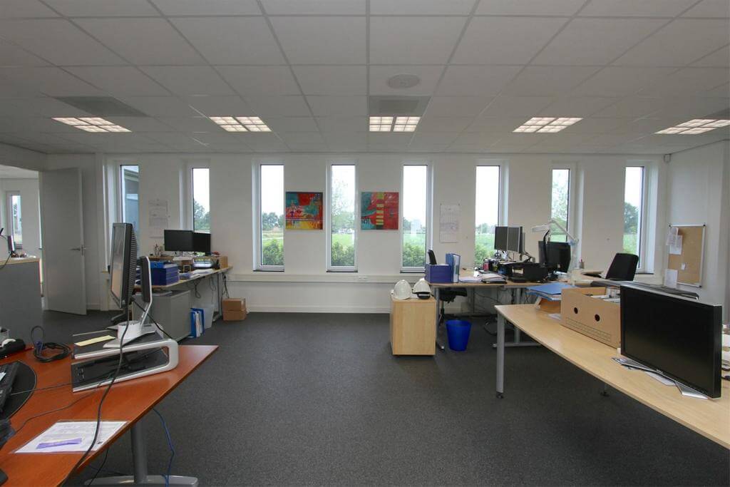 Royale entree van ca. 23 m2 met toegang tot alle vertrekken op de begane grond en houten trap naar 1ste verdieping en betonnen trap naar het souterrain. Royale kantoortuin van ca. 79 m2, directiekantoor van ca. 23 m2, spreekkamer van ca. 18 m2, kantine van ca. 27 m2 voorzien van pantry met aanrecht, bovenkasten, koelkast, vaatwasser, wasbak. Herentoilet met wandcloset, urinoir en wastafel. Separaat damestoilet met wandcloset en fontein. De gehele begane grond is o.a. voorzien van siergrindvloer, kabelgoten, systeemplafonds, luxe en energiezuinige verlichtings-, verwarming-, koeling- en luchtbehandeling systemen.