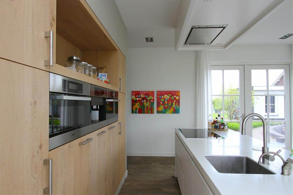 Royale en lichte entree met Garderobekast, meterkast, toiletruimte met wandcloset en fontein, lichtstraat en schuifdeuren naar de woonkamer. De woonkamer van ca. 45 m2 is voorzien van erker en grote puien, waardoor het een heerlijk lichte ruimte is. Royale woonkeuken van ca. 37 m2 met moderne en luxe keukeninrichting. De keuken is o.a. voorzien van royaal kookeiland met bar, 5-pits inductiekookplaat, vaatwasser, 4-laden vriezer, grote koelkast, stoomoven, combi oven, koffiezetapparaat, geïntegreerde afzuigkap in het plafond en cooker. Tevens openslaande deuren naar het terras en elektrische haard. Separate berging. Tussenhal naar de slaapkamer met openslaande deuren naar het terras. Door de vaste kasten is deze ruimte tevens "walk in closet". Royale slaapkamer van ca. 23 m2 met prachtige hoge plafonds die doorlopen tot de nok, 2 vaste schuifkasten, 2 dakramen, deur naar het terras en directe toegang tot de privé badkamer. Luxe en moderne badkamer voorzien van bad, inloopdouche met dubbele douchekop, dubbel wastafelmeubel, wandcloset en sfeervol betegeld. De begane grond is voorzien van luxe PVC vloer in houtlook.