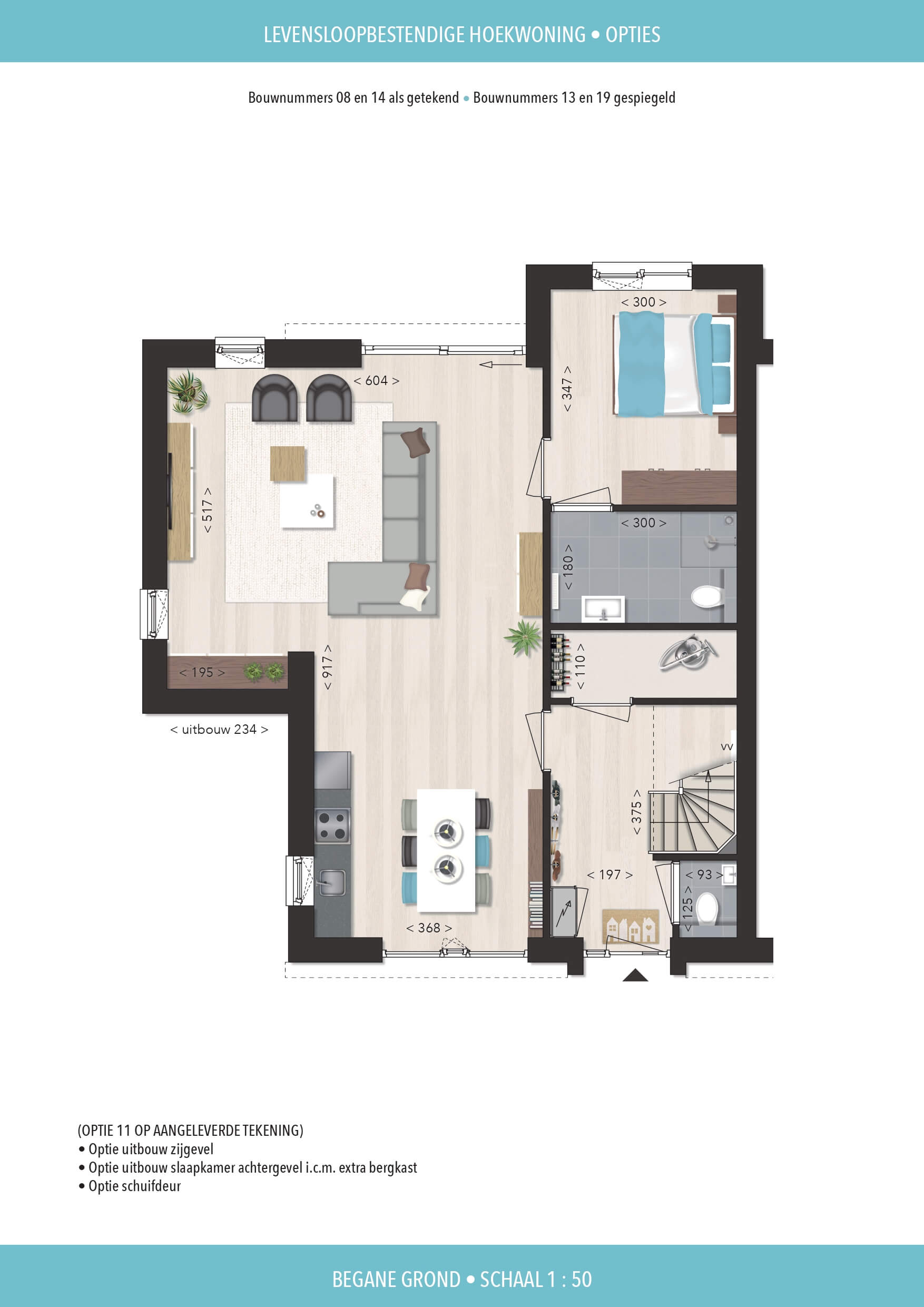 De levensloopbestendige woningen in Liesdaal zijn ideaal voor wie op zoek is naar gemakkelijk en gelijkvloers wonen, maar kunnen ook perfect dienen als eengezinswoning. Op de begane grond bevinden zich een slaapkamer en badkamer, wat zorgt voor optimaal wooncomfort en toekomstbestendig wonen. Via een optionele plattegrond kan er gekozen worden voor een indeling met twee slaapkamers en een badkamer op de eerste verdieping. Deze flexibiliteit in de indeling maakt de woningen geschikt voor verschillende levensfasen en woonwensen.