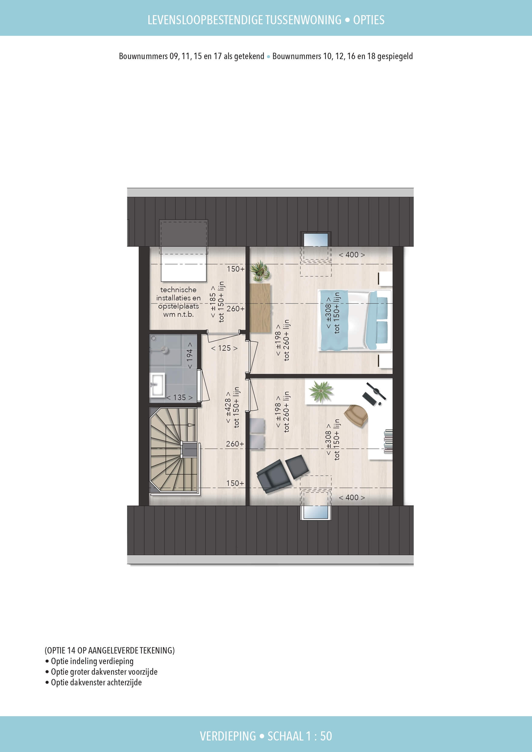 De levensloopbestendige woningen in Liesdaal zijn ideaal voor wie op zoek is naar gemakkelijk en gelijkvloers wonen, maar kunnen ook perfect dienen als eengezinswoning. Op de begane grond bevinden zich een slaapkamer en badkamer, wat zorgt voor optimaal wooncomfort en toekomstbestendig wonen. Via een optionele plattegrond kan er gekozen worden voor een indeling met twee slaapkamers en een badkamer op de eerste verdieping. Deze flexibiliteit in de indeling maakt de woningen geschikt voor verschillende levensfasen en woonwensen.