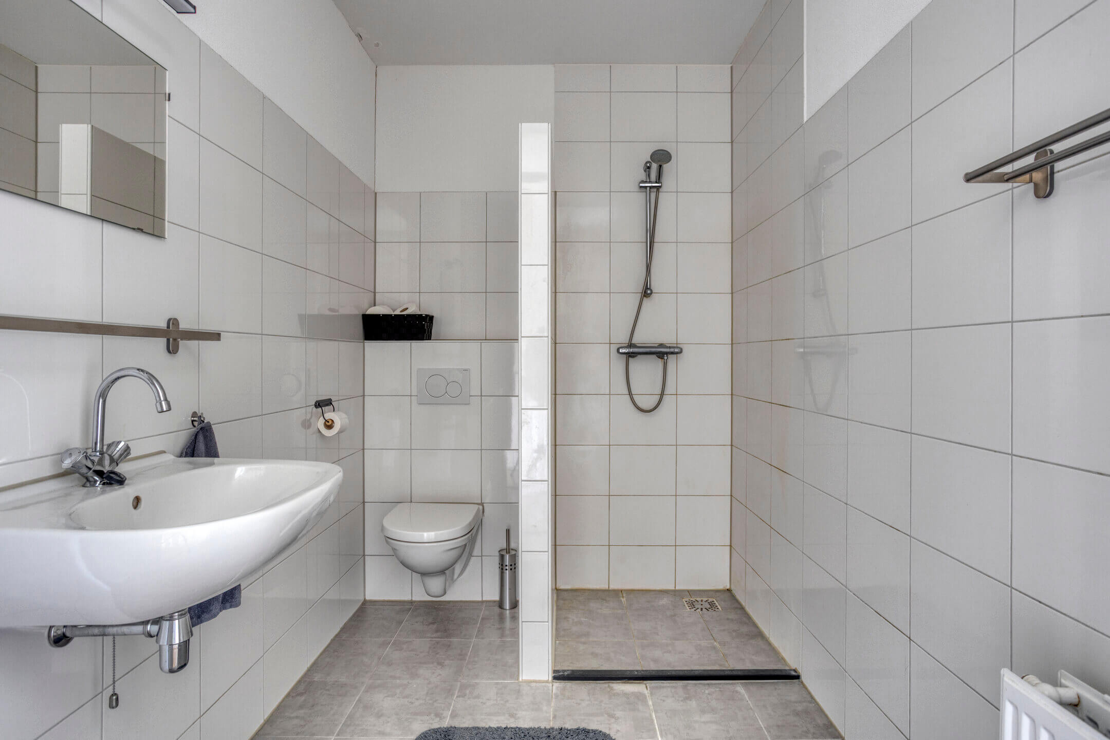 • Badkamer met inloopdouche, wastafel en toilet