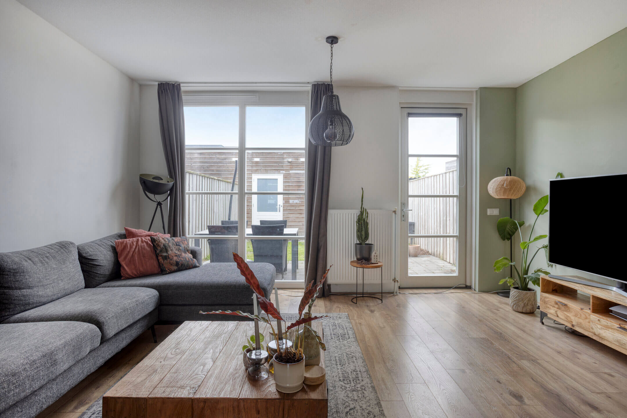 De woning heeft een zeer praktische indeling, te beginnen bij de ruime hal met toegang tot de meterkast, garderobe, toiletruimte, de trap naar de eerste verdieping en de woonkamer. De woonkamer is een lichte, open ruimte met strak gestucte wanden. De laminaat vloer zorgt voor een moderne uitstraling en comfort. Via de achterdeur komt u in de onderhoudsvriendelijke achtertuin, ideaal voor zowel ontspanning als gezinsactiviteiten. De open hoekopgestelde keuken aan de voorzijde van de woning is voorzien van een moderne keukeninrichting, compleet met gaskookplaat, afzuigkap, combi-oven, vaatwasser en een aparte koelkast en vriezer.