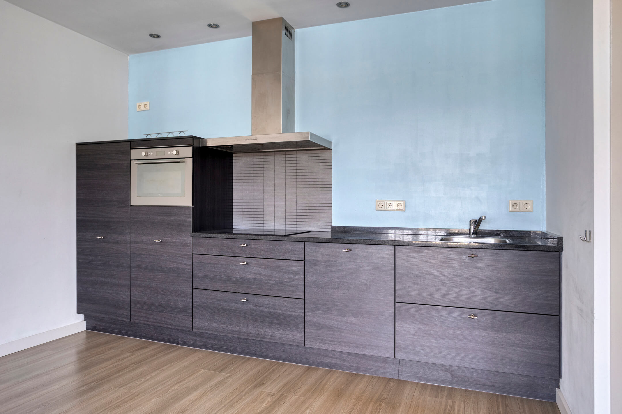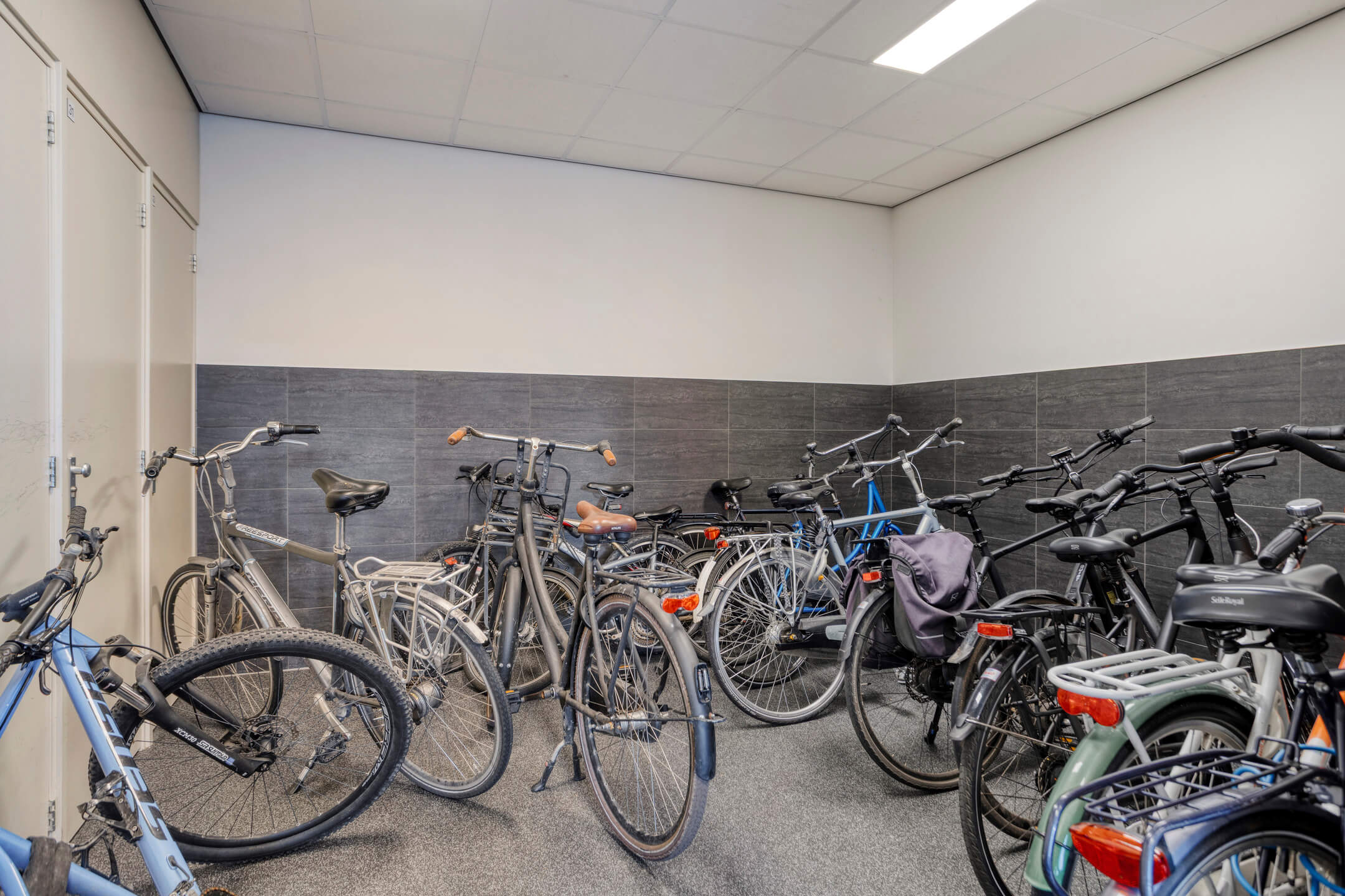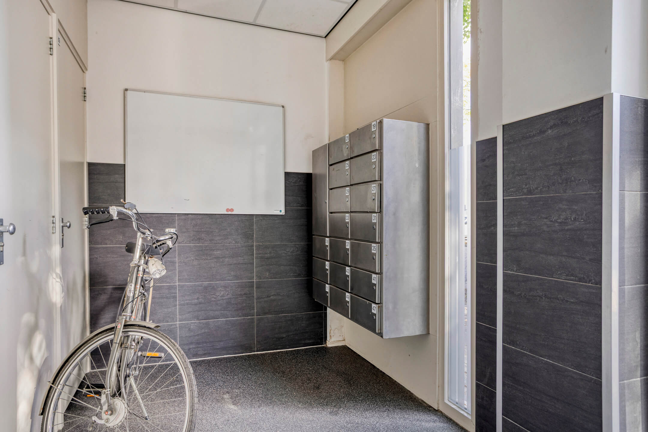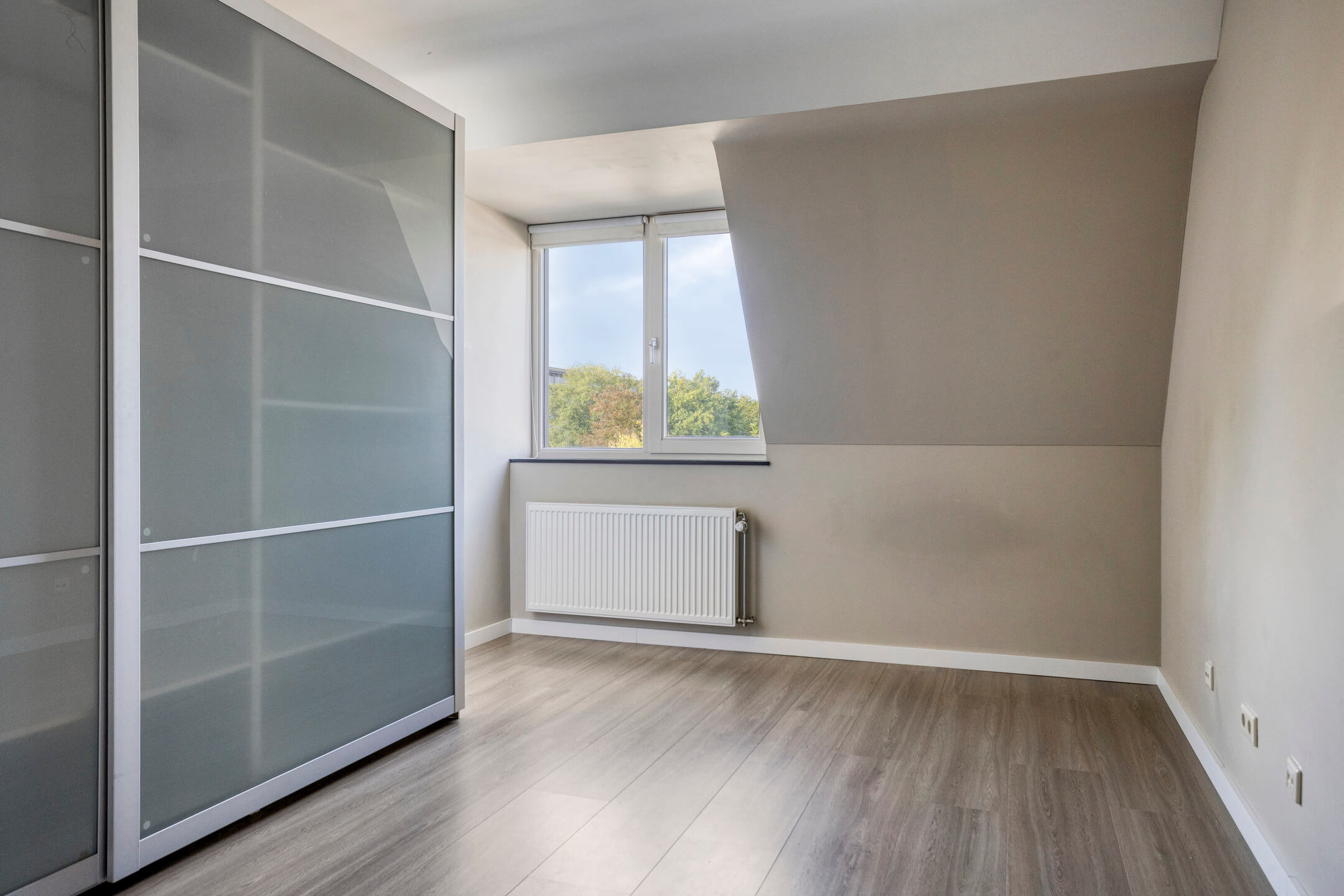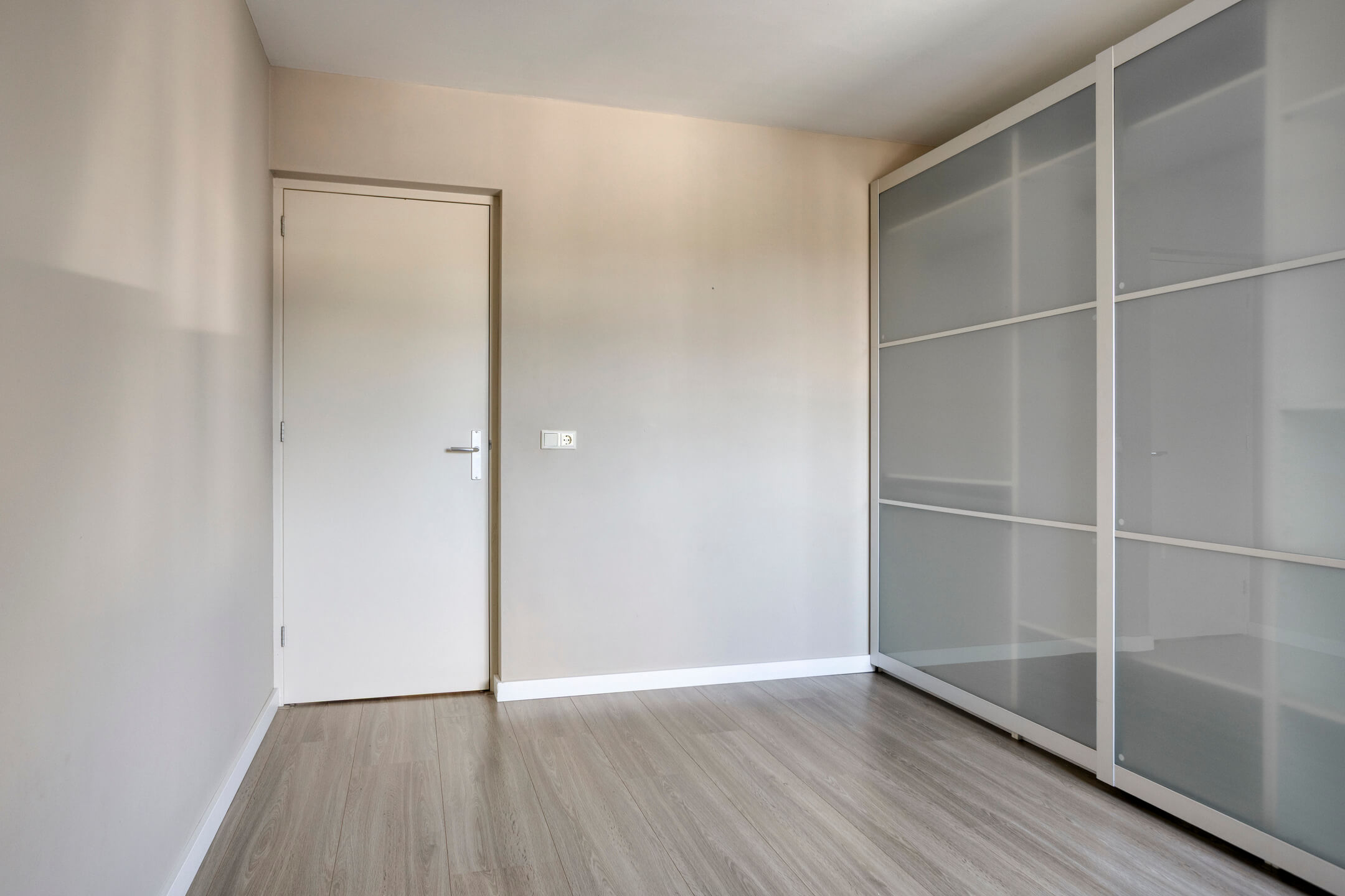 Het appartement heeft 1 ruime slaapkamer van ruim 14 m². De badkamer beschikt over een inloopdouche, een wastafel, een spiegelkast en een separaat toilet. De CV-ketel en mechanische ventilatie-unit bevinden zich in de kast in de hal. Een handige kast naast de keuken biedt daarnaast ruimte voor de wasmachine en droger.