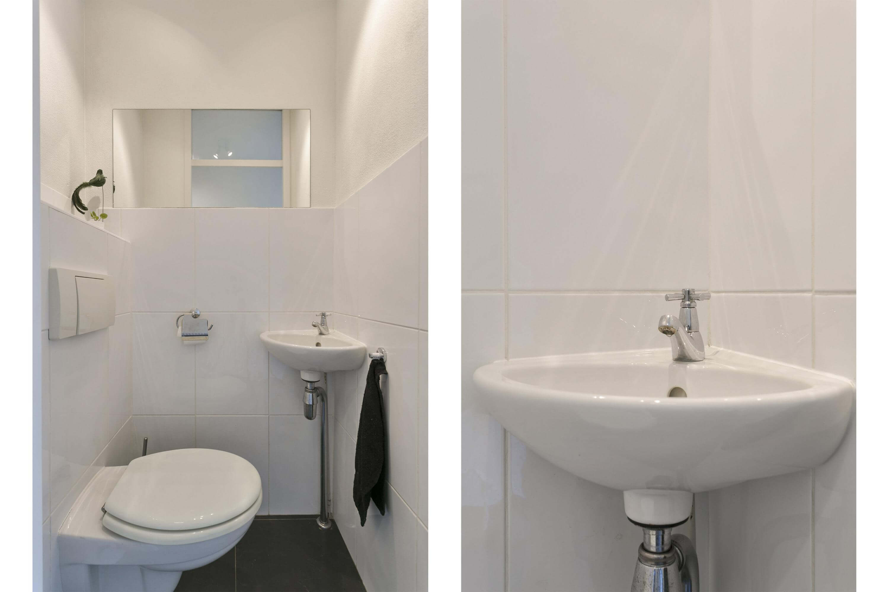Hal: de hal is voorzien van een antraciet tegelvloer en biedt toegang tot de vaste trap naar de eerste verdieping, een praktische provisiekast en de meterkast. De gehele begane grond (met uitzondering van toilet) is in 2017 voorzien van nieuw stucwerk op de wanden en plafonds.