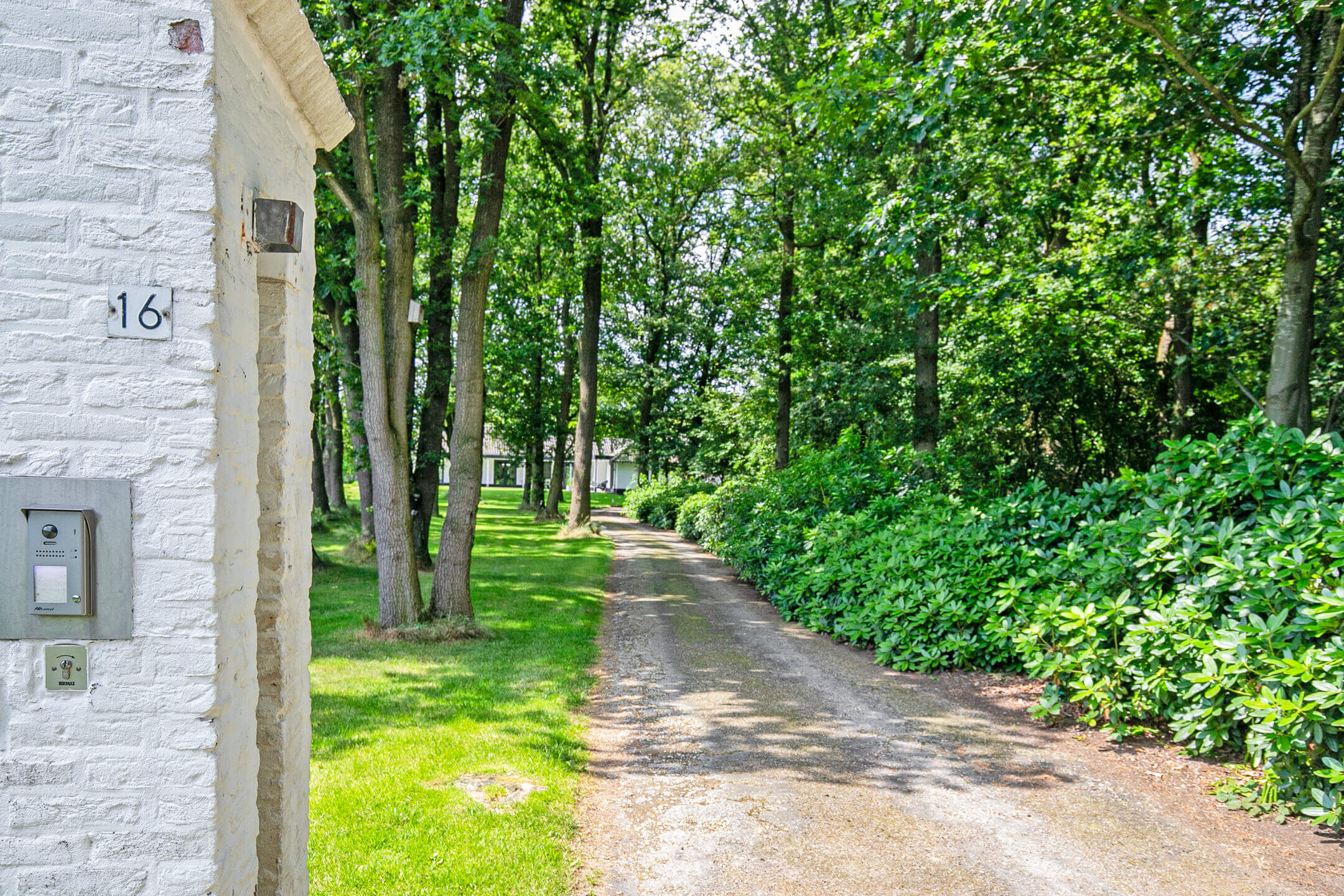 Bij aankomst leidt een lange oprijlaan u door het groen naar de elektrische toegangspoort, met brievenbus en intercom. De charmante villa vind je aan het einde van de oprijlaan op en biedt op de parking rechts van het huis plaats aan circa 10 auto’s en is tevens voorzien van een laadpaal.