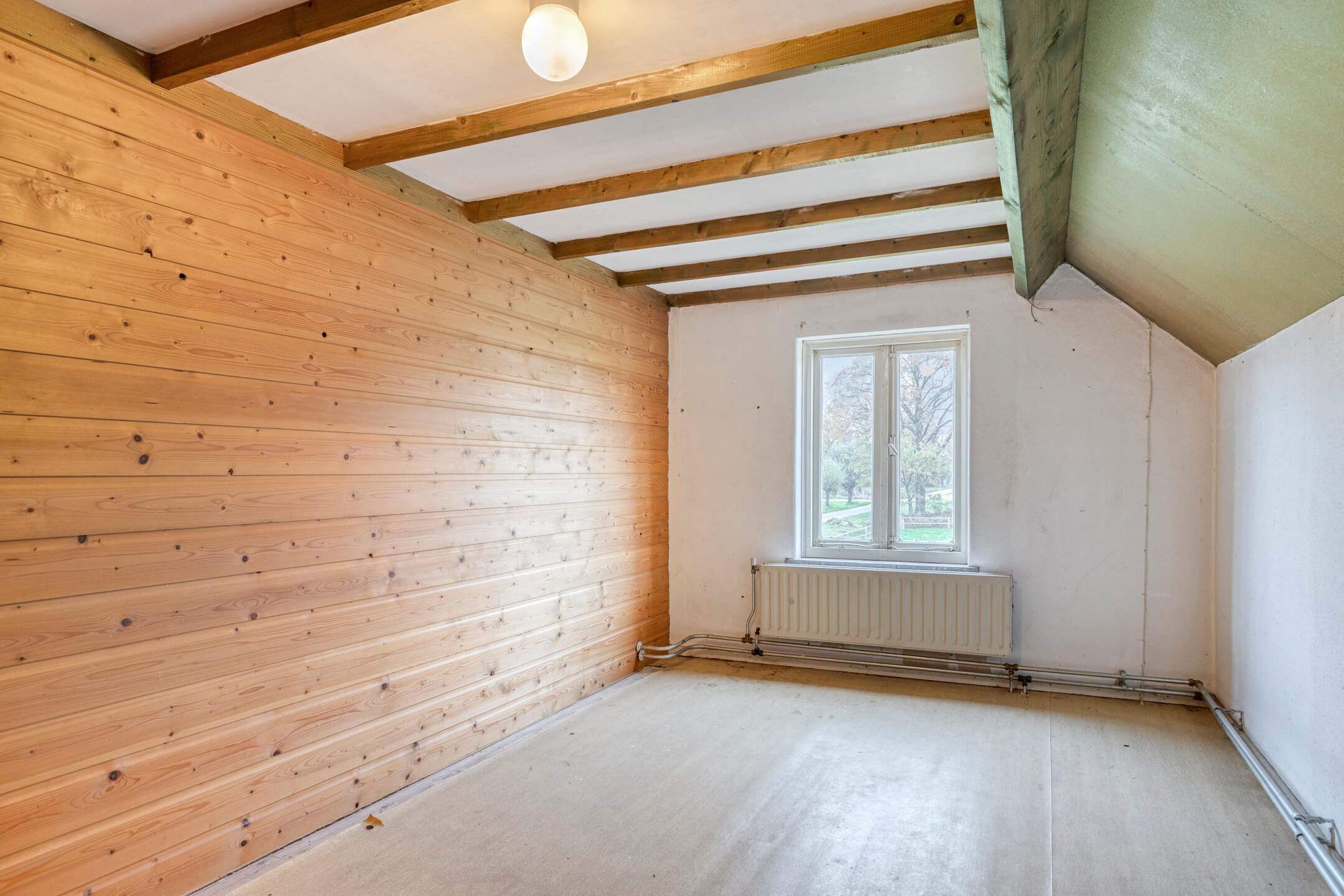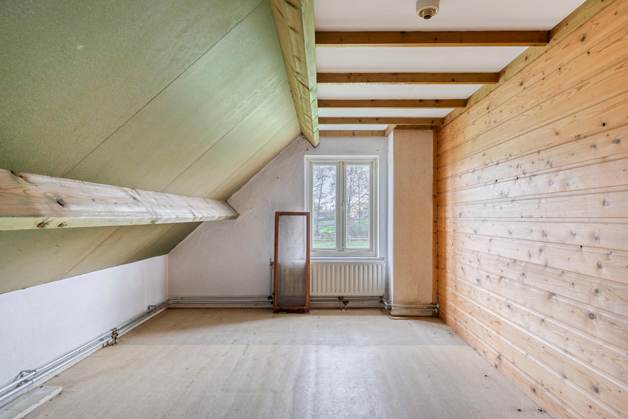 De verdieping is bereikbaar via een houten trap en biedt drie slaapkamers en een grote zolderruimte. Dankzij de oppervlakte en de indelingsmogelijkheden is dit een verdieping die zich uitstekend leent voor een nieuwe, toekomstbestendige woonindeling.