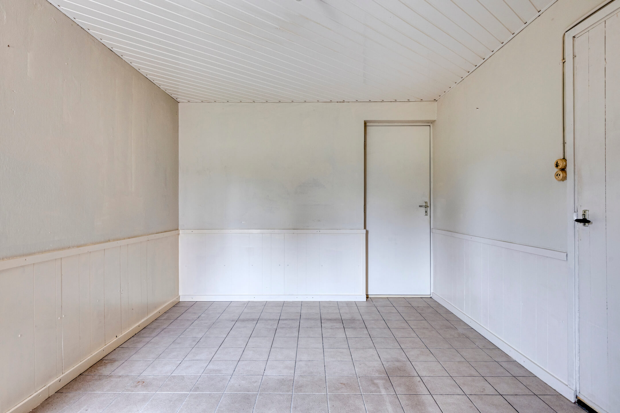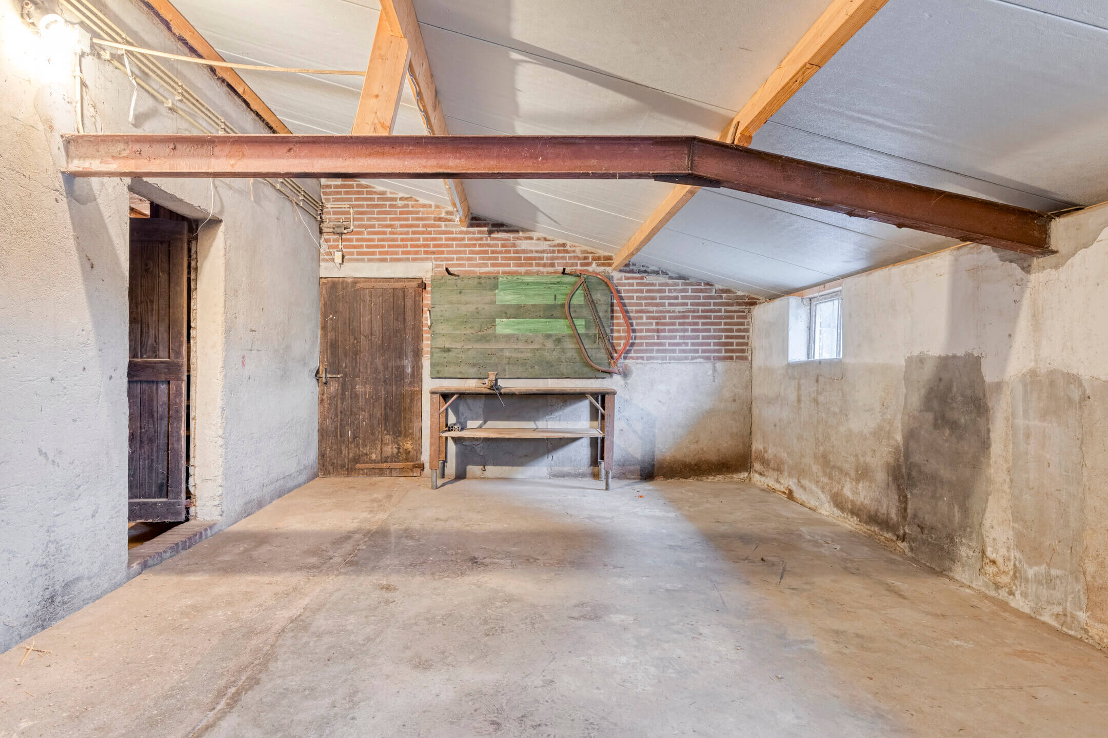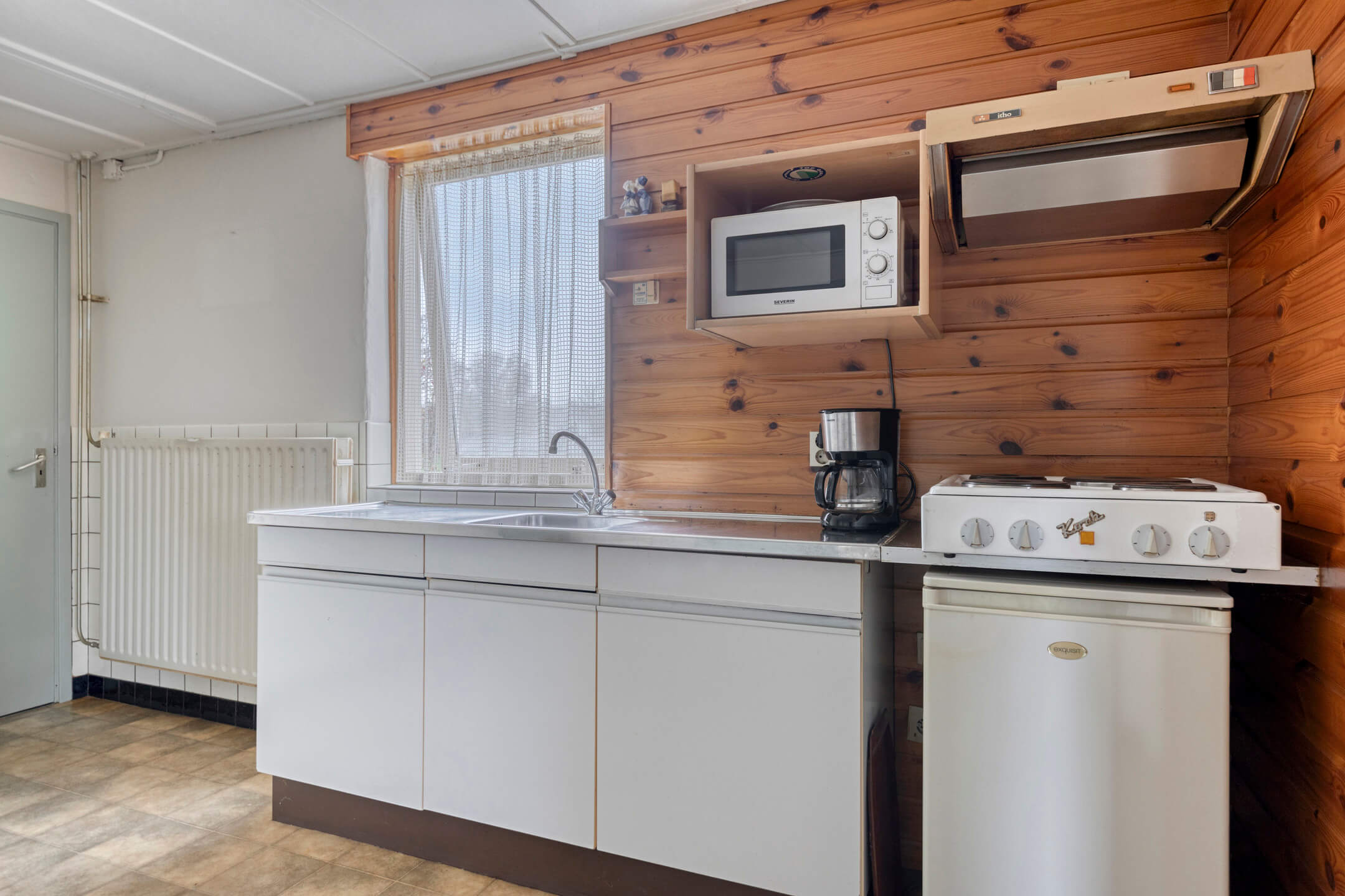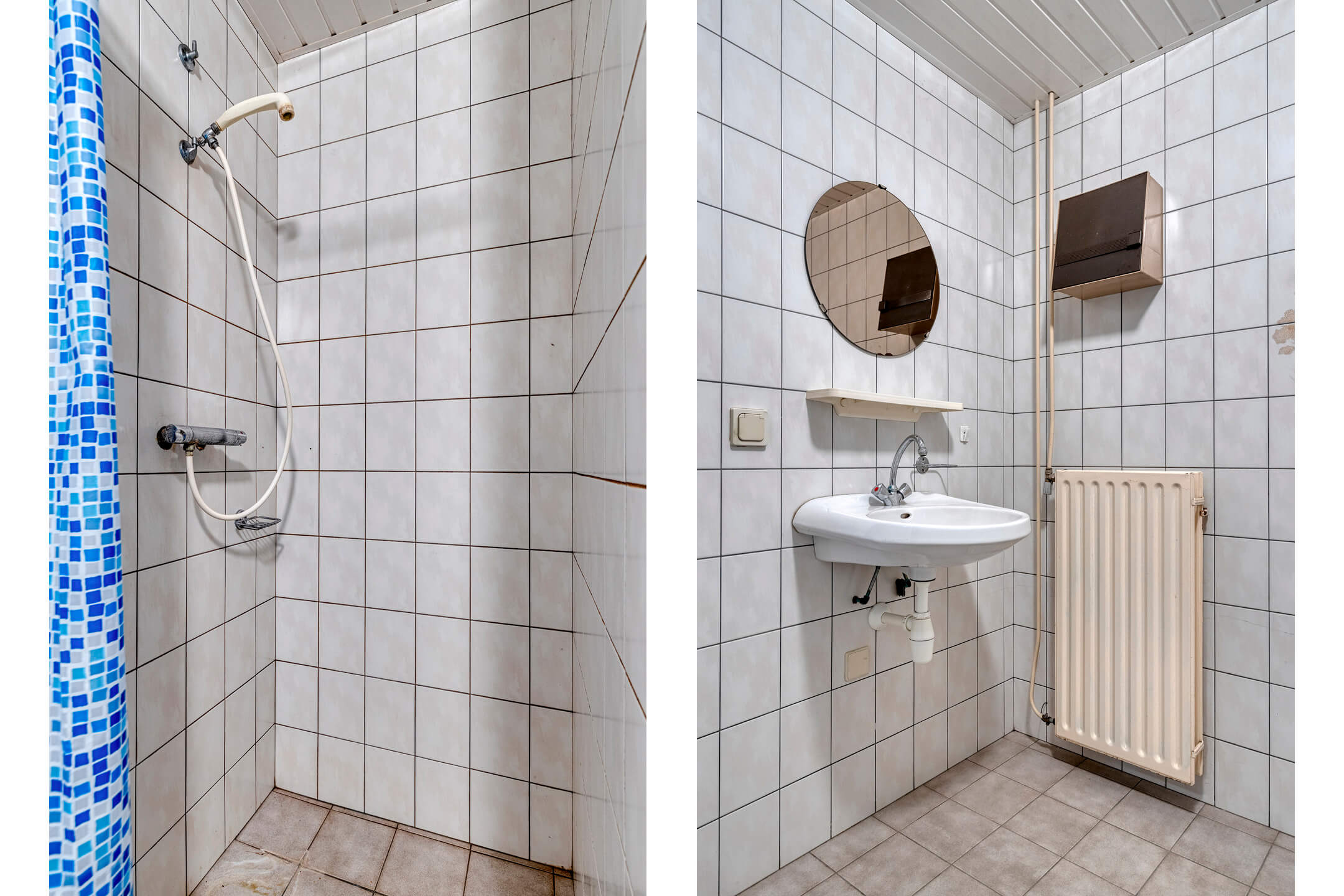 De bijkeuken beschikt over een tegelvloer, vaste kast, klein keukenblok en witgoedaansluitingen. Aangrenzend bevinden zich het toilet, de badkamer (met ligbad, inloopdouche en wastafel) en enkele praktische bergruimtes die vroeger in gebruik waren als stal.