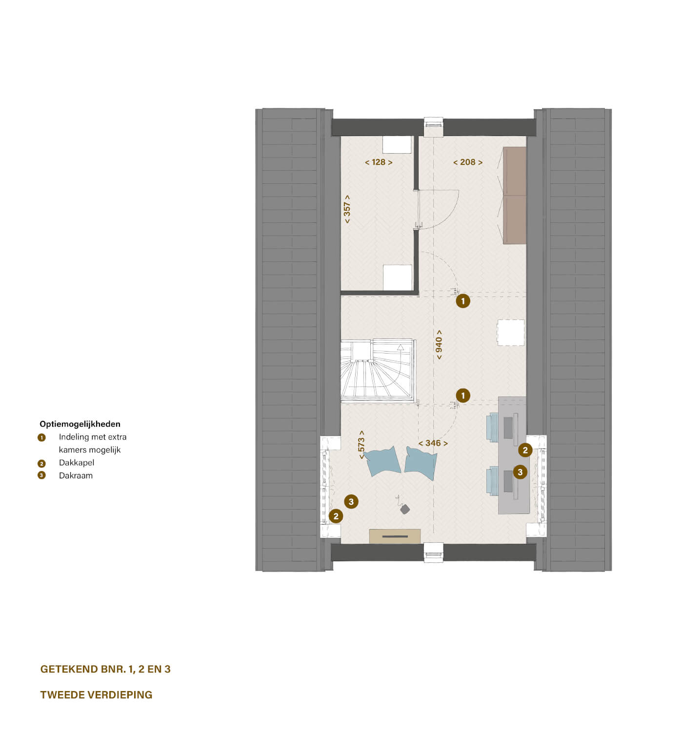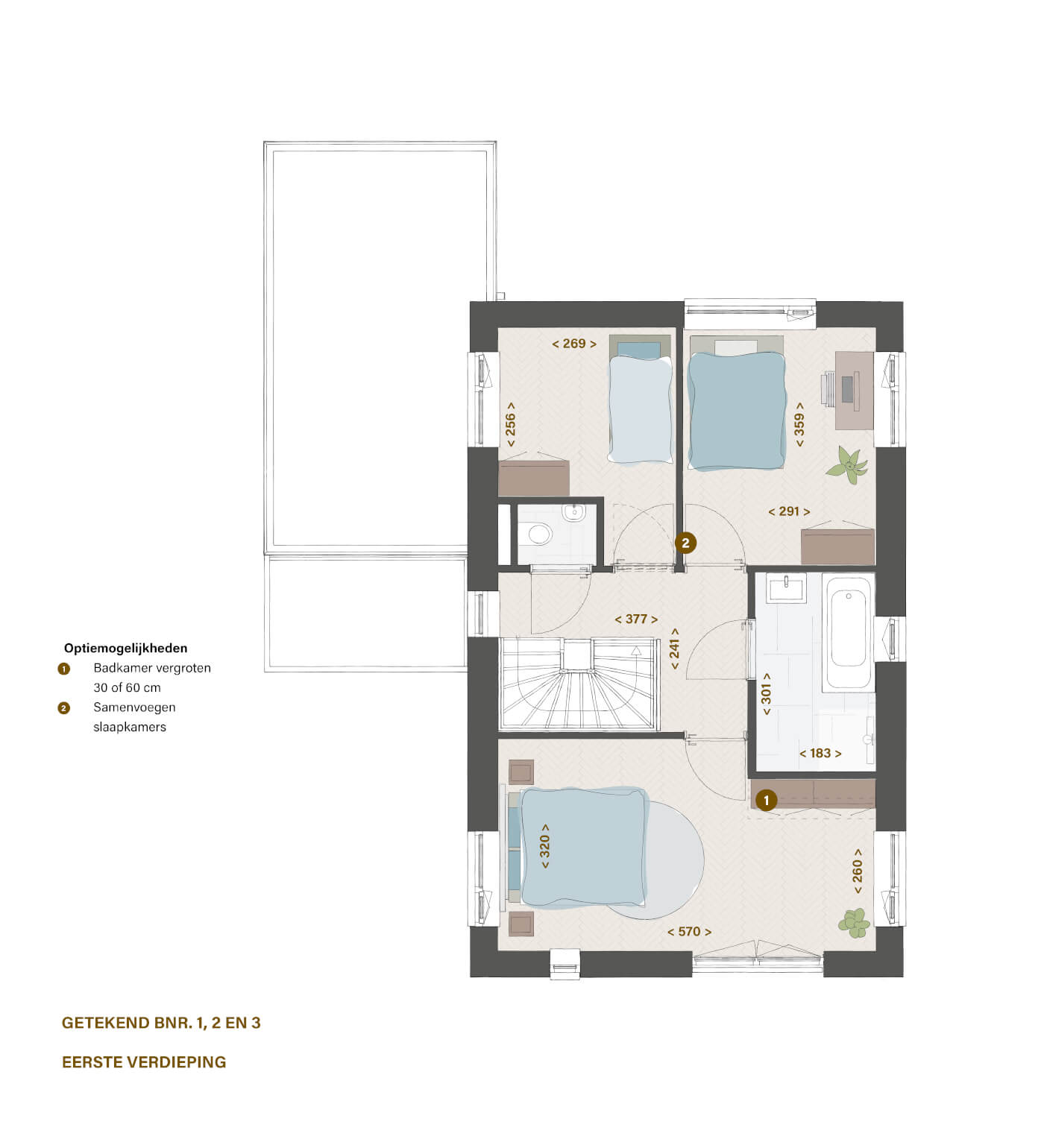 Binnen is er veel aandacht voor comfort. De slaapkamer heeft een frans balkon en een grote raampartij die voor extra licht zorgt. De badkamer is compleet ingericht met een bad, inloopdouche en wasbak. Op de eerste verdieping vind je daarnaast een separaat toilet. Met de vaste trap bereik je de zolder, die je helemaal naar eigen wens kunt indelen.