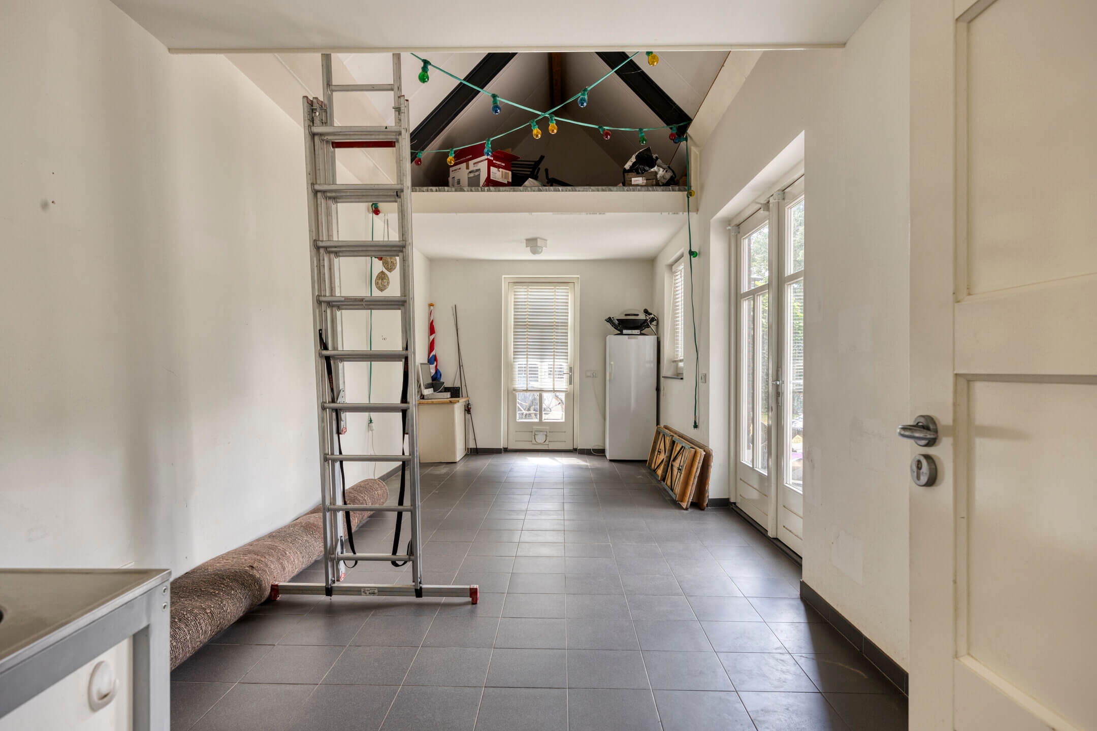 De ruime bijkeuken beschikt over een vaste kastenwand met witgoedaansluitingen en een eigen toegang tot het terras. Grenzend hieraan ligt een multifunctionele ruimte, met aan beide zijden een zolderverdieping. Deze ruimte is perfect geschikt als mantelzorgwoning, tienerhangout, praktijk aan huis of gastenverblijf – de mogelijkheden zijn eindeloos. Ook hier is een keukenblok aanwezig met spoelbak.